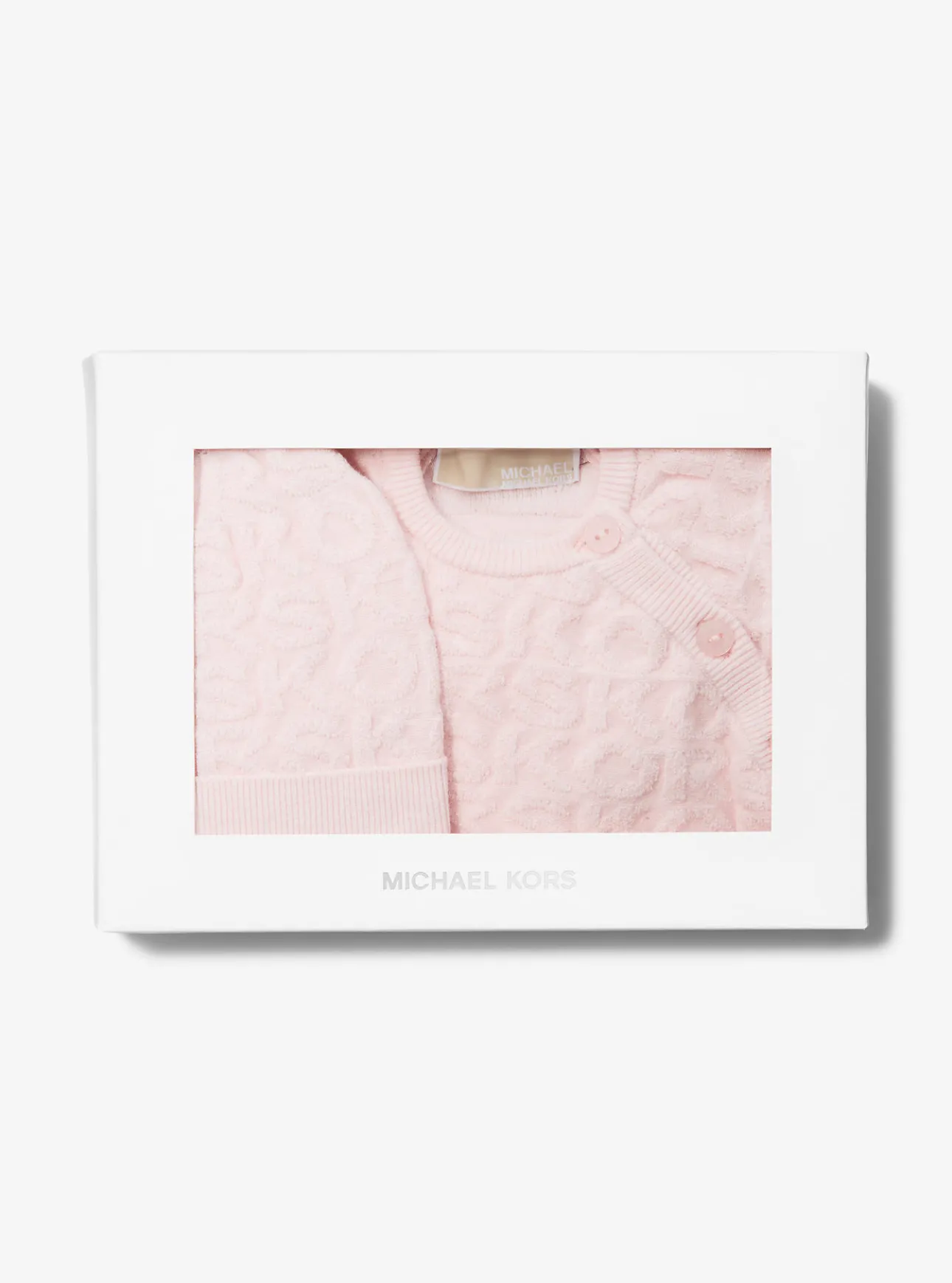 Keep them cozy in this cotton terry-blend pajama set, complete with a button-front top, footed leggings, and a matching hat. All three pieces are finished with textured KORS lettering that adds subtle style.