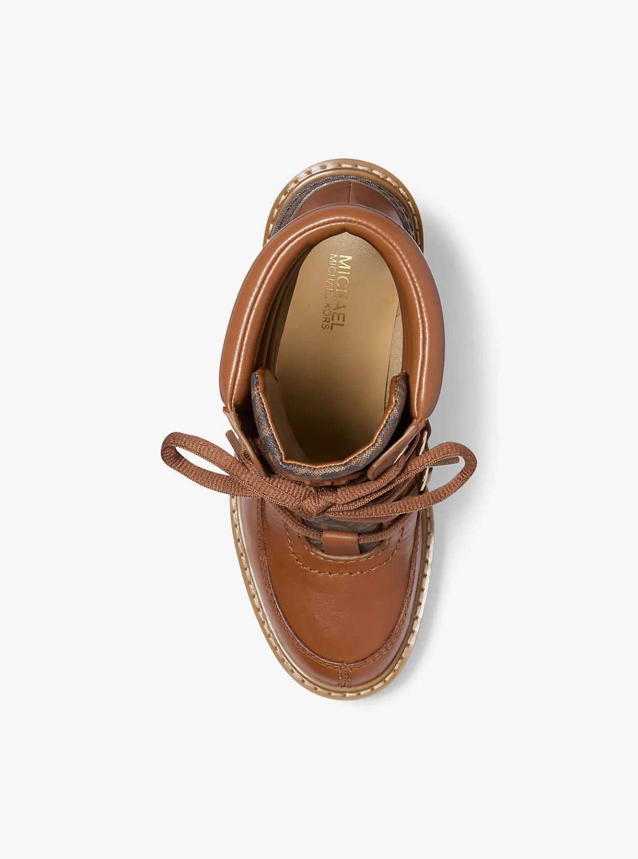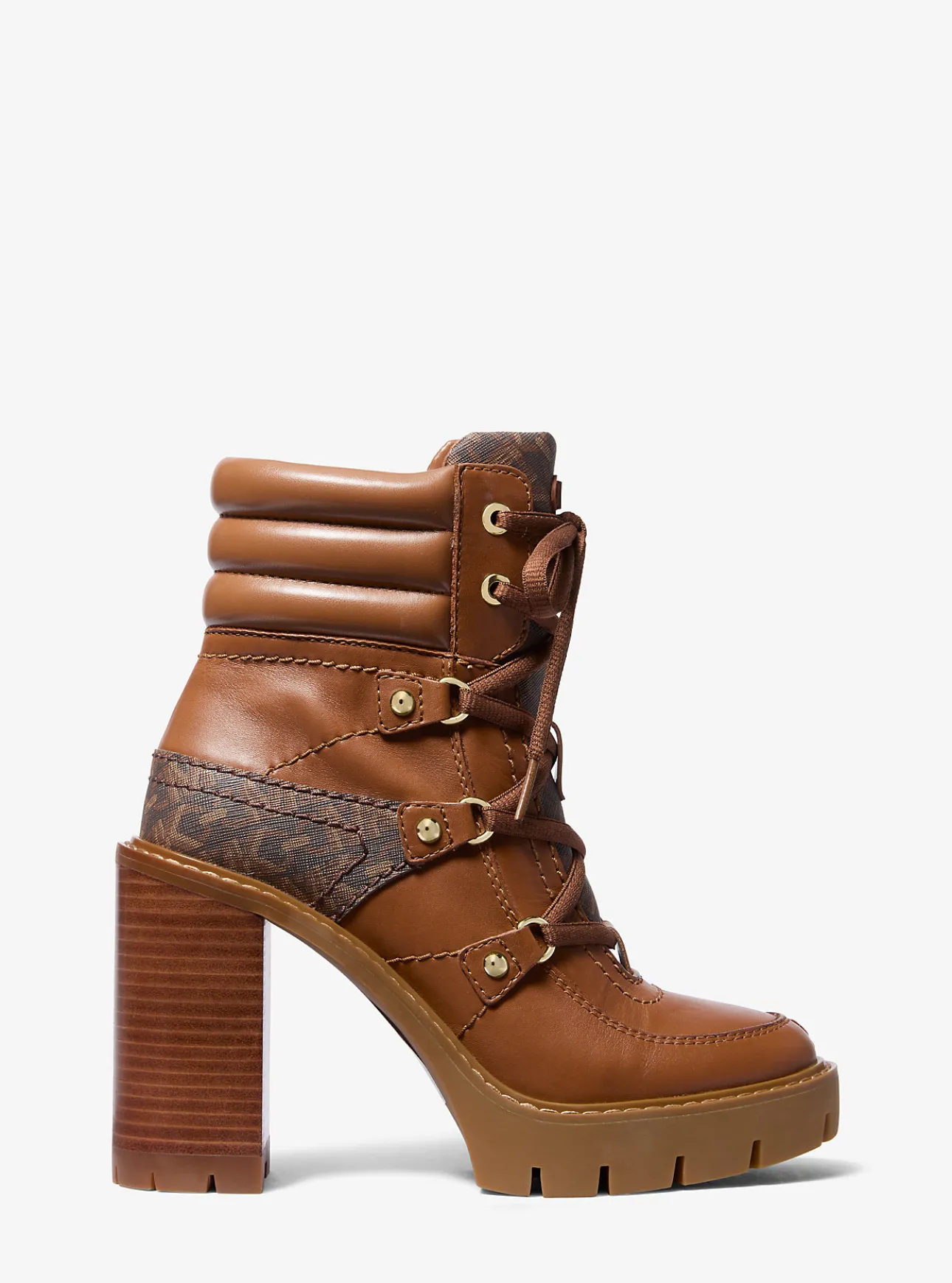 Our leather Asher boots give the rugged work boot a stylish update with Empire monogram accents. Set on a stacked heel and lug sole, this lace-up style is a cool complement to your favorite jeans or a silky slip dress.