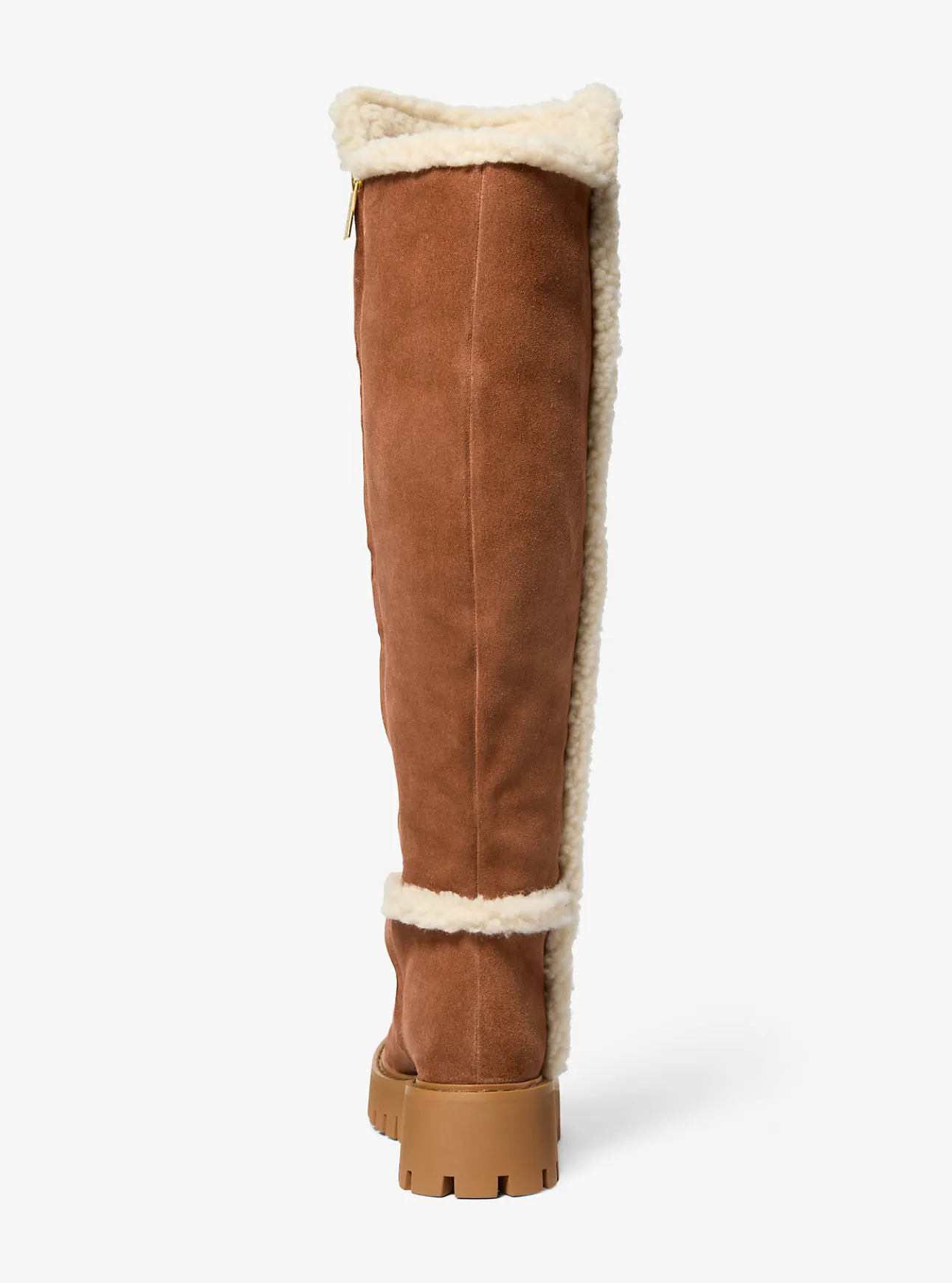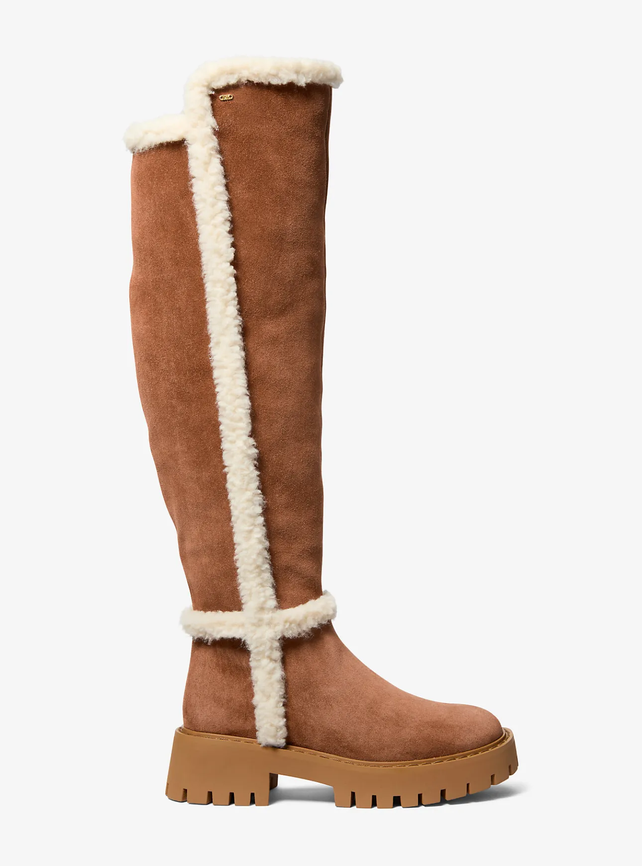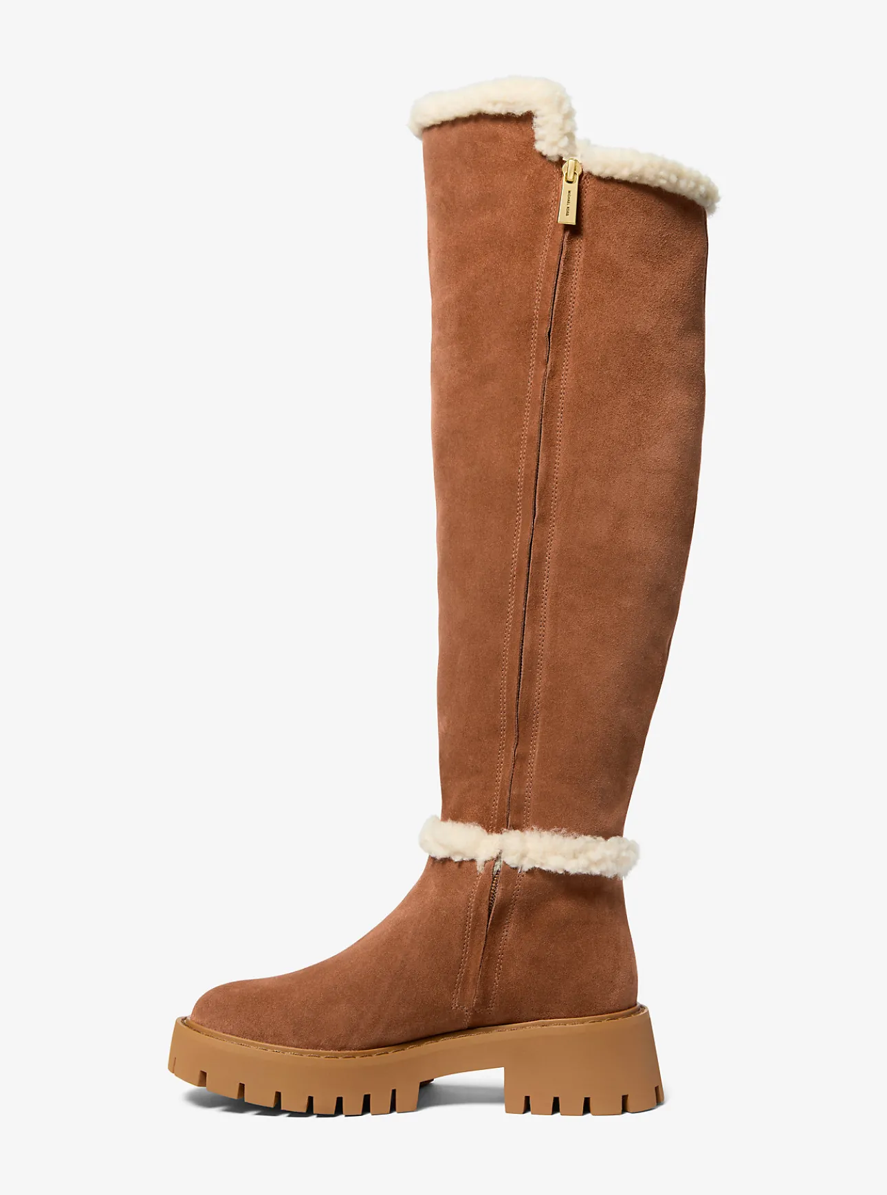Our Asher boot will add luxe texture to any look. This knee-high style is rendered in supple suede contrasted by faux shearling lining and trim, while a lug sole and water-resistant finish delivers practicality.