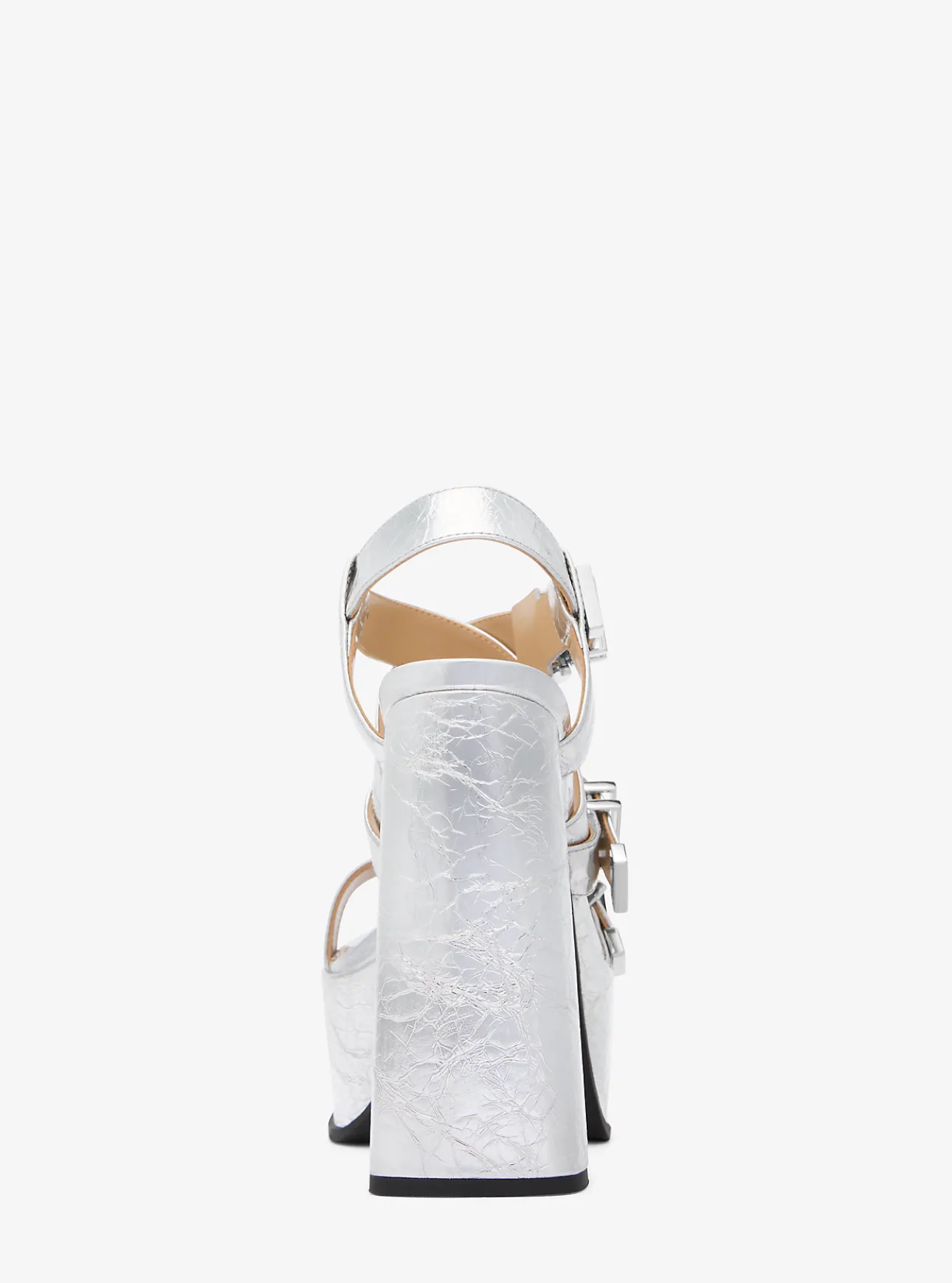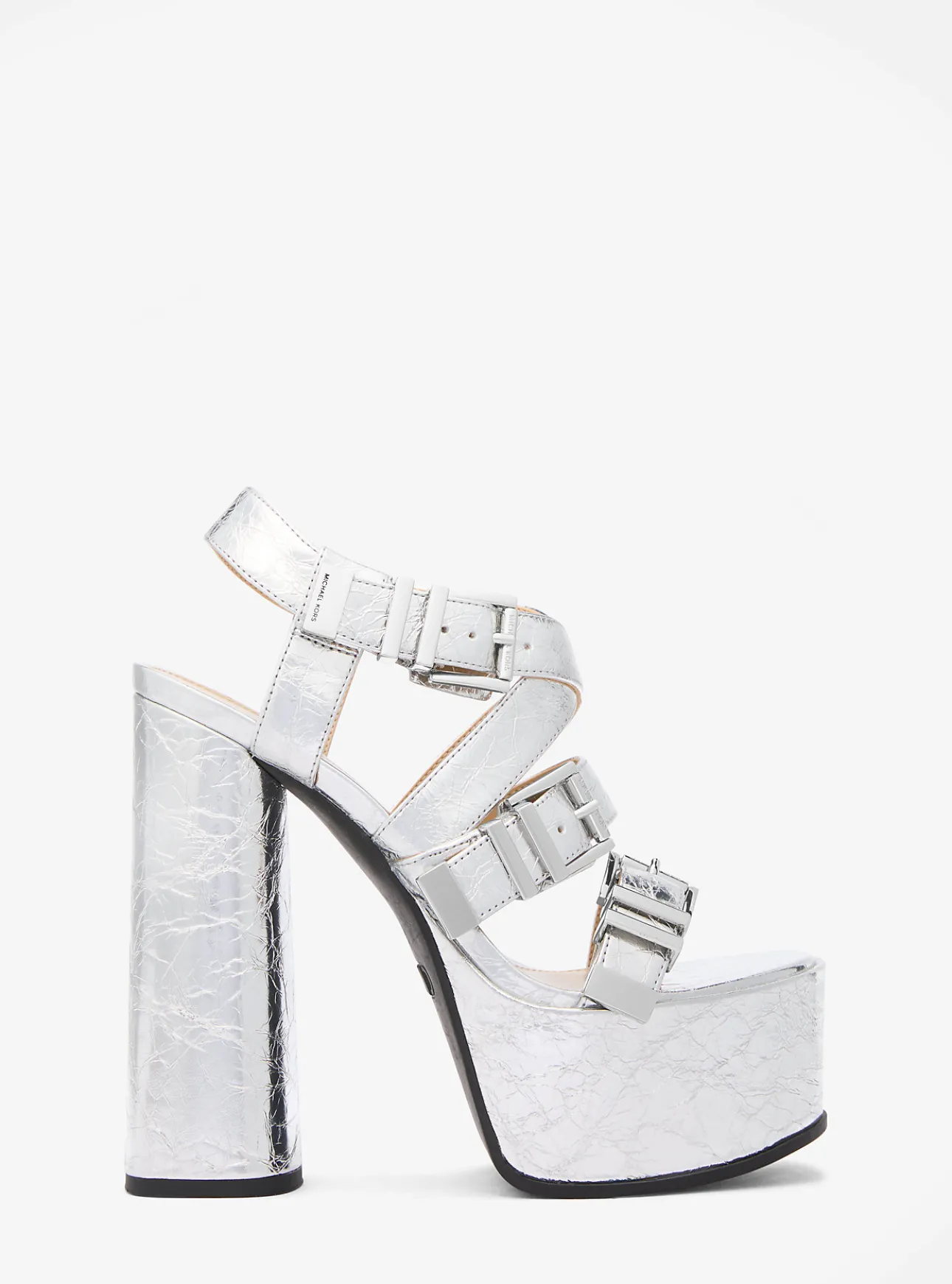 Turn heads in our Darrington platform sandal. Defined by a metallic, crackled finish, this sky-high leather style combines a soaring heel with polished buckles inspired by an archival design. They’ll have you dressing from the feet up.