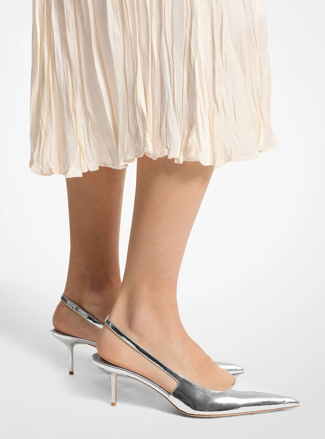 New for Fall/Winter 2024, our coveted Emma pumps instantly elevate any look. They’re designed with a classic pointed toe and slingback strap to create a polished silhouette. Complete with a low stacked heel for ease of movement, this metallic leather pair is guaranteed to be a wardrobe must-have for years to come. Made in Italy.