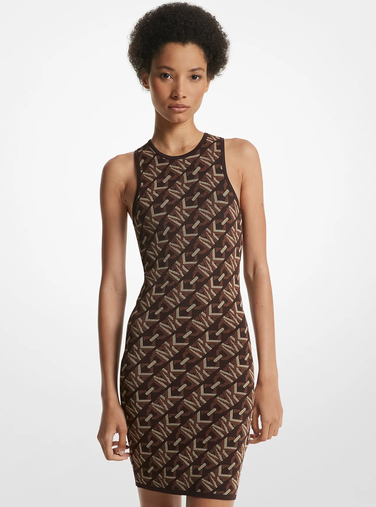 Cut in a sporty racerback silhouette, this body-hugging, stretch-knit tank dress features our Empire Signature Logo print for graphic definition. Effortlessly soft and easily packable, it can be dressed up or down simply by switching out your choice of shoe.