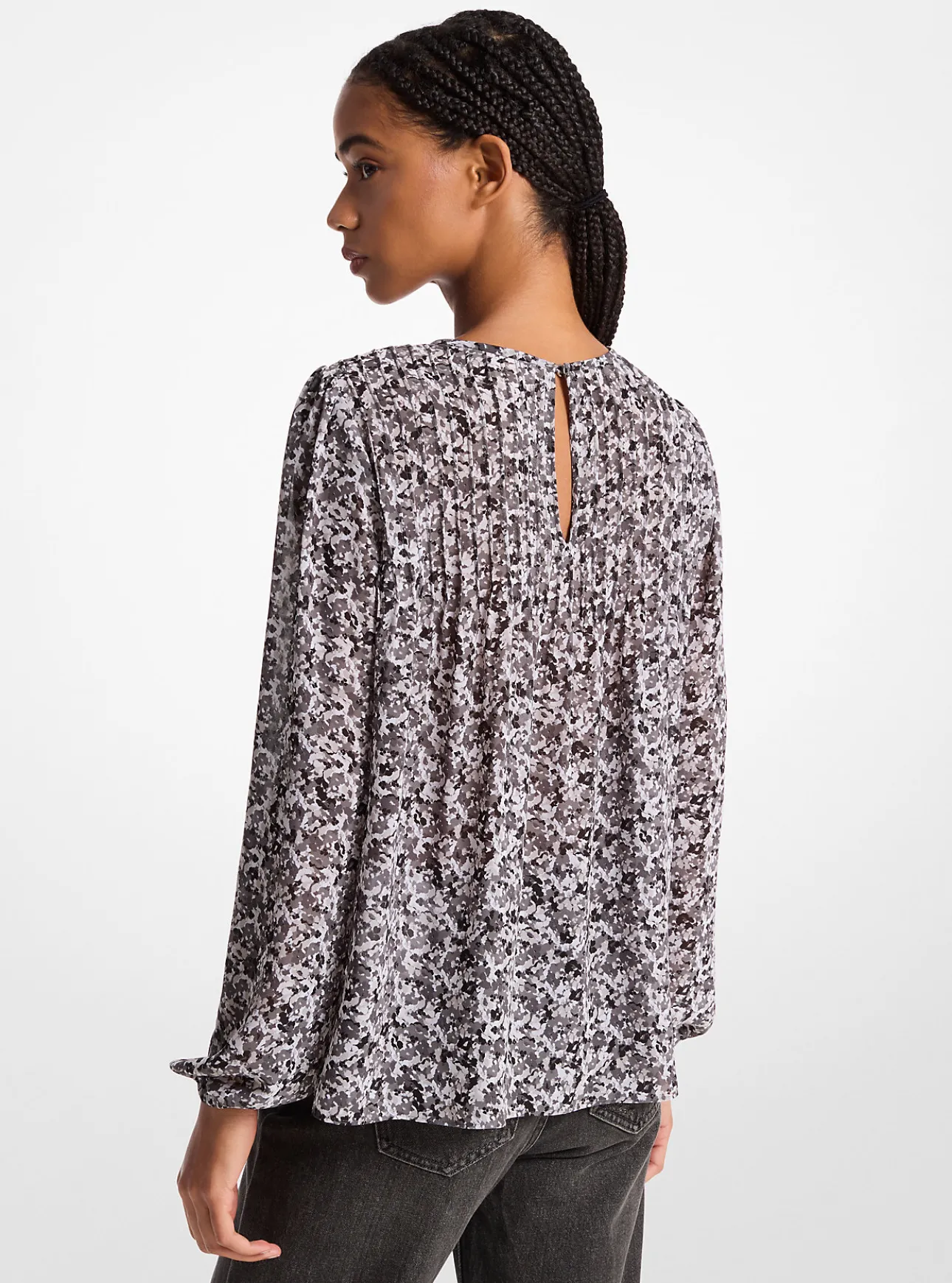 An abstract floral print adds romantic appeal to this effortless top. Puffed sleeves and artful pintucking enhance the breezy silhouette, rendering it a stylish option for sunny days. Tuck it into high-waisted denim and style it with your favorite boots to pull the look together.