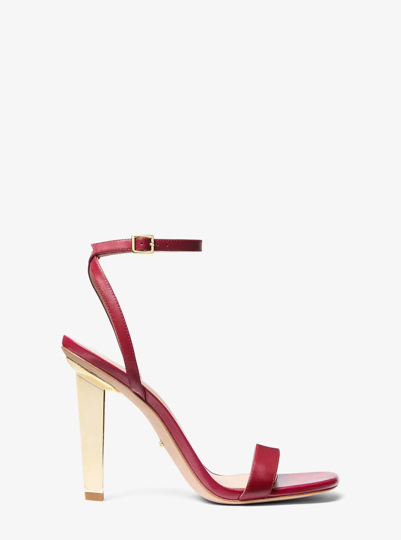 Crafted from supple smooth leather and set on a gold-tone architectural heel, the Halle sandal will ground a myriad of looks with glamorous style. Designed with a delicate wraparound strap that buckles at the ankle, this timeless style looks as chic with airy skirts and dresses as it does with tailored suiting.