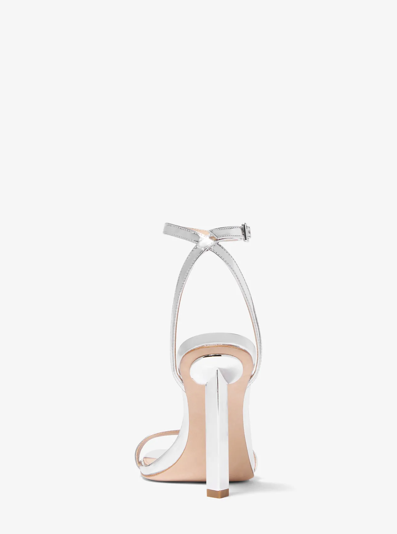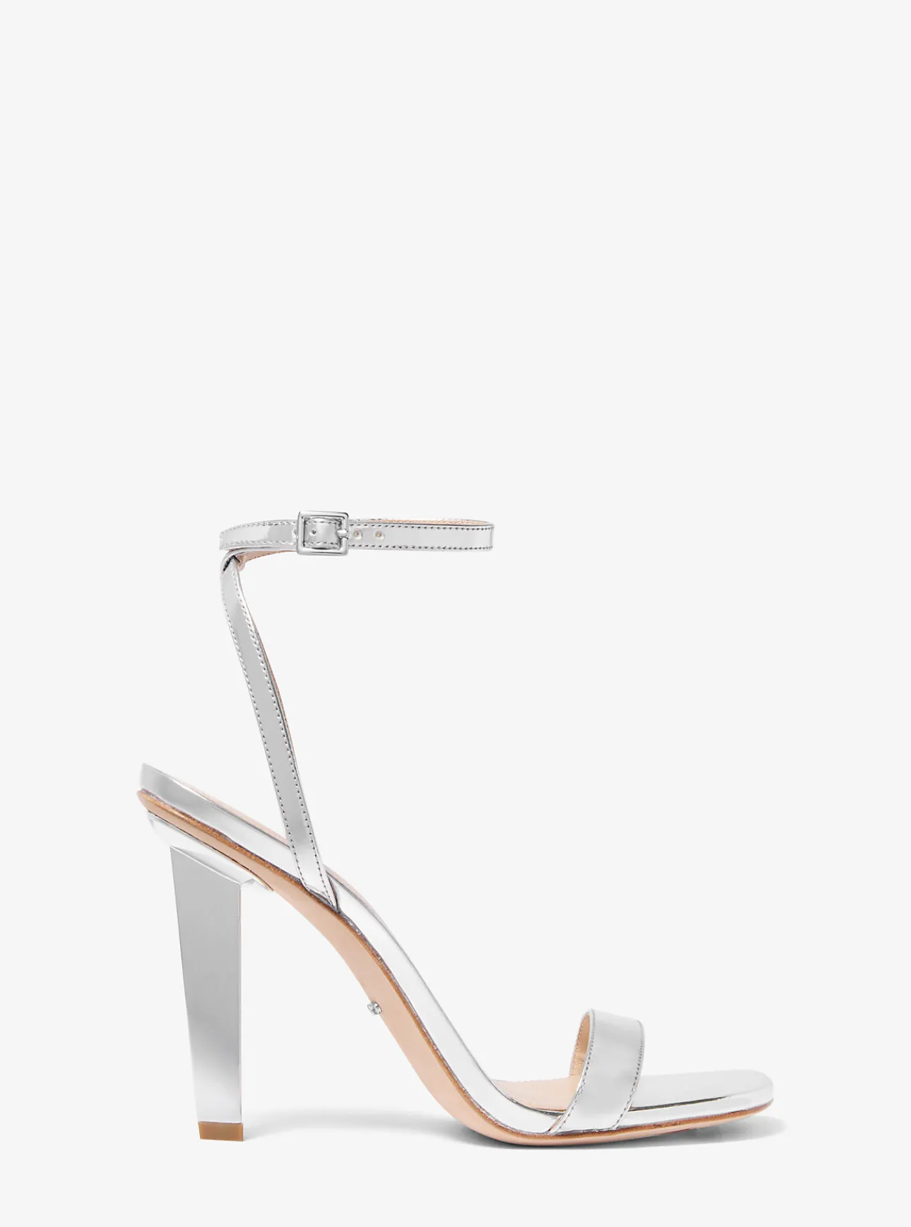 Crafted from supple specchio leather and set on a galvanized architectural heel, the Halle sandal will ground a myriad of looks with minimalist style. Designed with a delicate wraparound strap that buckles at the ankle, this timeless style looks as chic with airy skirts and dresses as it does with tailored suiting.