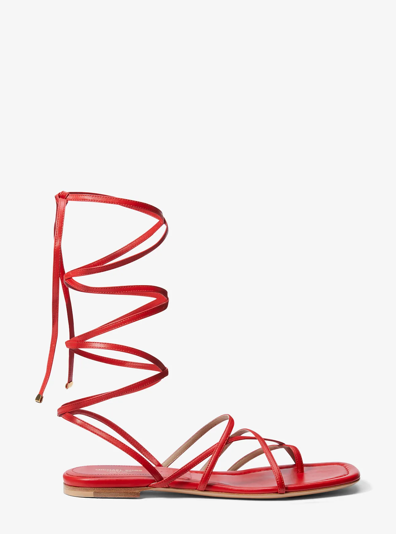 These barely-there lace-up sandals are a glamorous way to ground dresses and skirts. Crafted in Italy from smooth leather, they feature a flat sole for ease of wear.