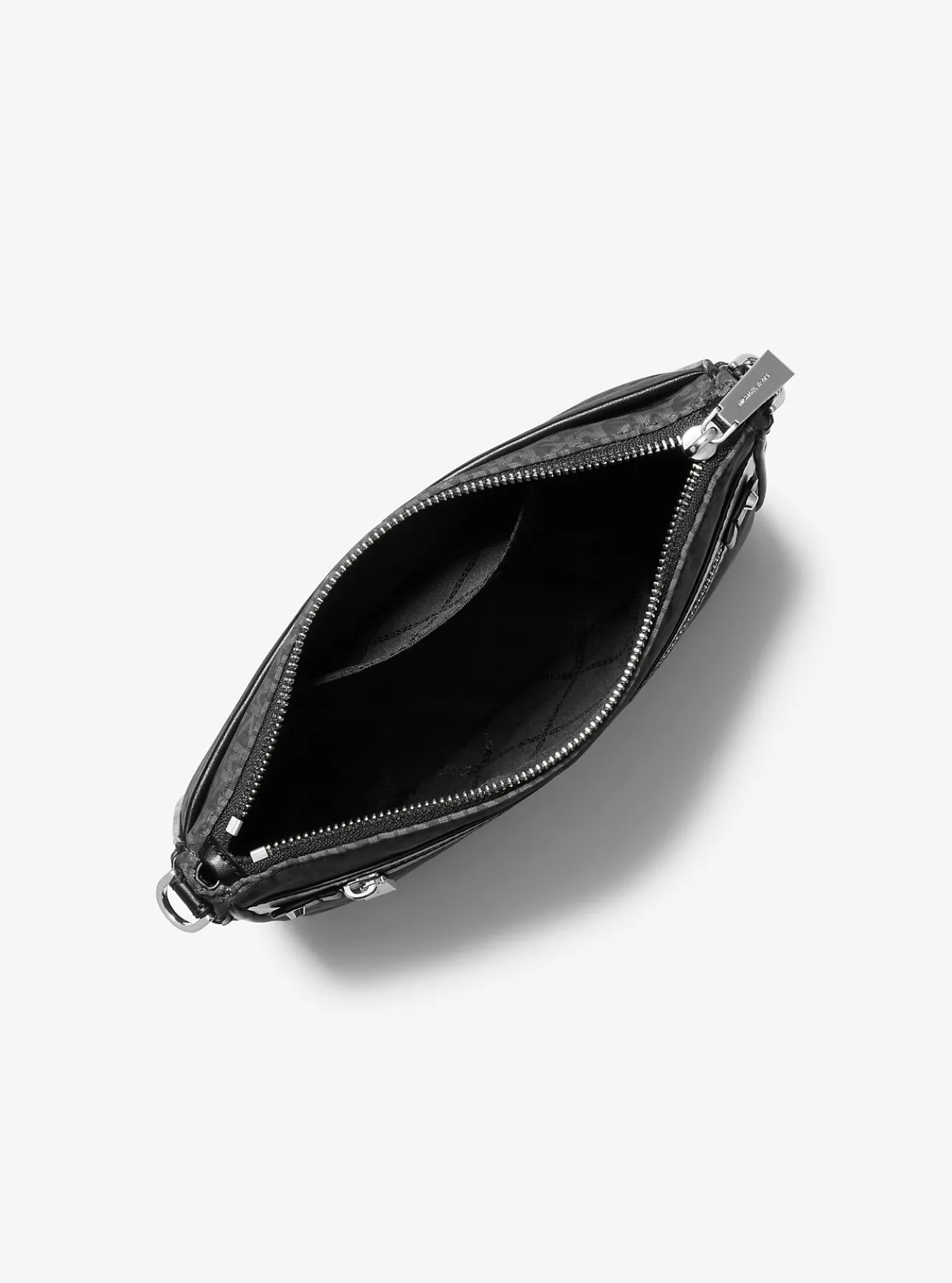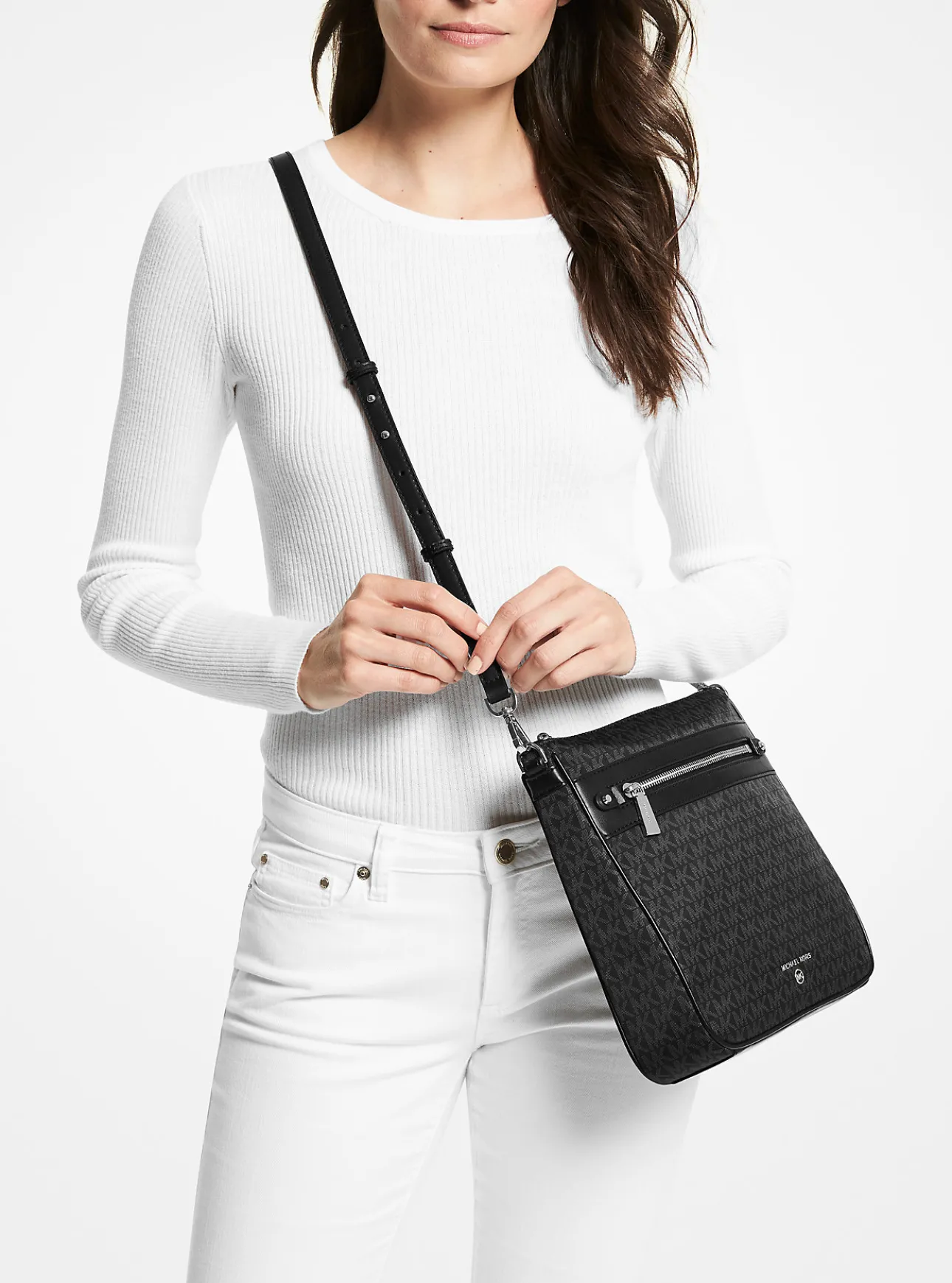 The Jet Set bag is an essential crossbody for a day of sightseeing. Printed with a perforated take on our sought-after initials, this top-zip silhouette opens to a pocketed interior that will safely hold your phone, sunglass case and much more. Adjust the smooth shoulder strap to find your desired fit.