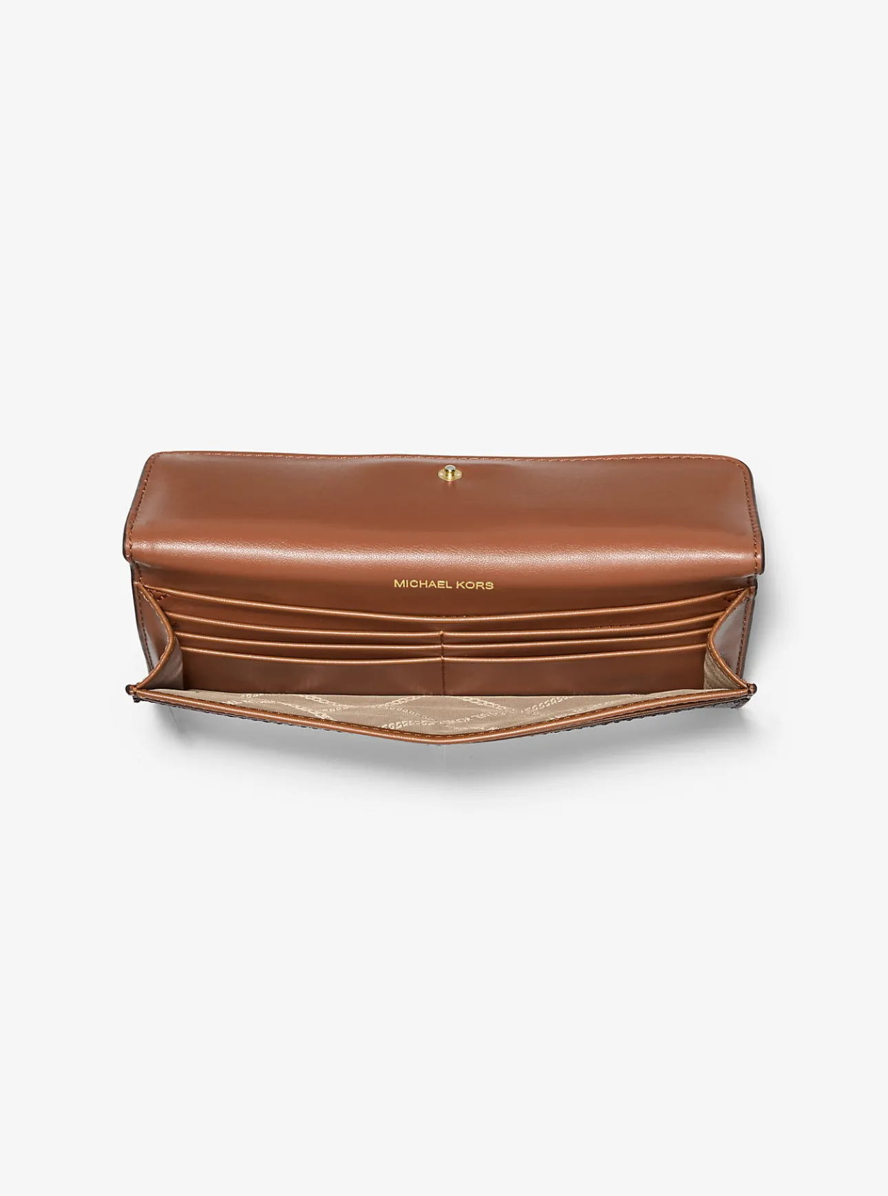 A timeless accessory day after day, year after year. In our Signature logo-print canvas, the Jet Set snap-front wallet has space to store all your essentials with multiple interior card slots and a zip pocket on the back. Slip it into your favorite bag, or use it as a clutch by carrying it solo.