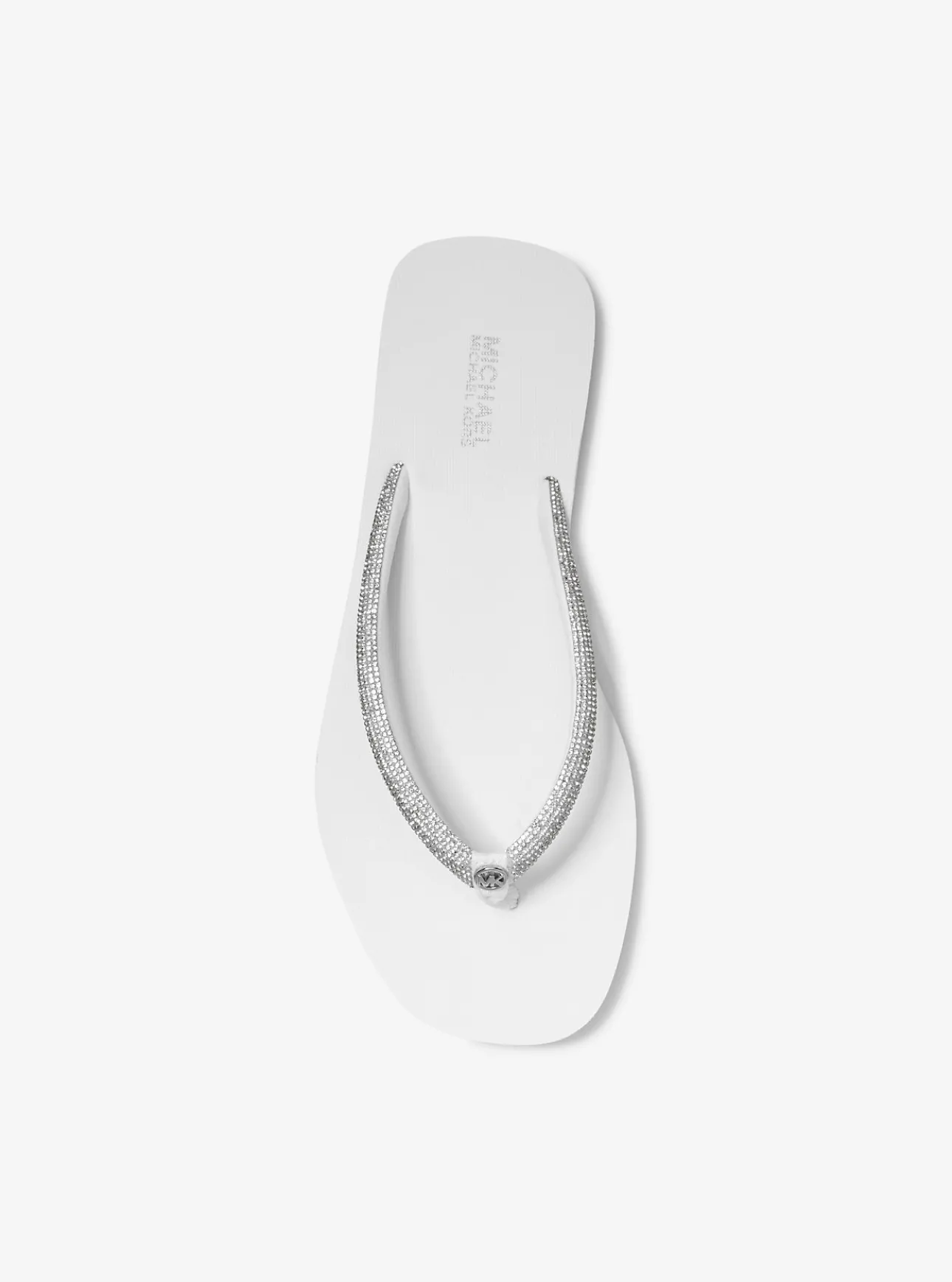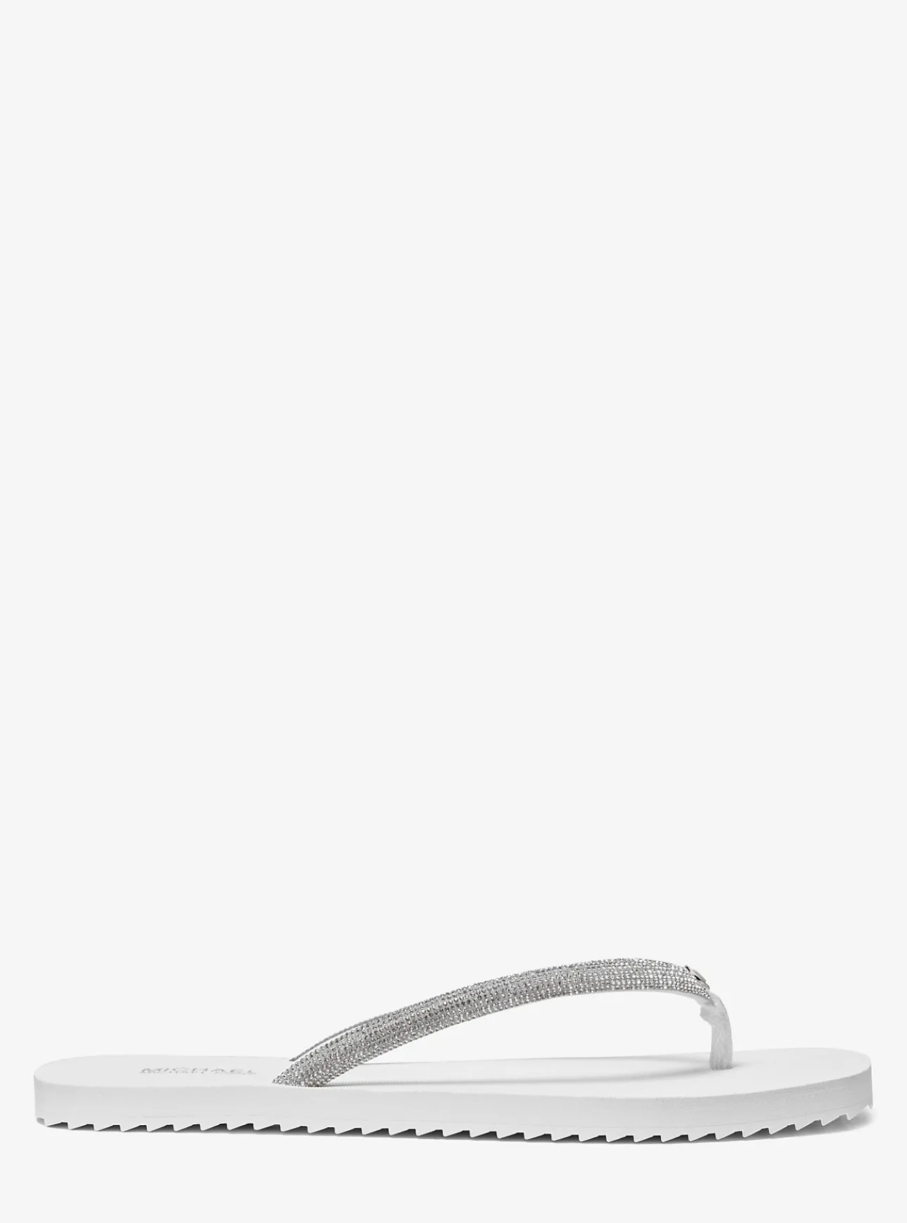 Elevate your casual footwear with the Jinx flip flop. This pair features a serrated rubber sole and an of-the-moment square toe. It’s finished with crystal-embellished straps and a polished charm for signature appeal. Wear yours with swimsuits and cotton dresses alike.