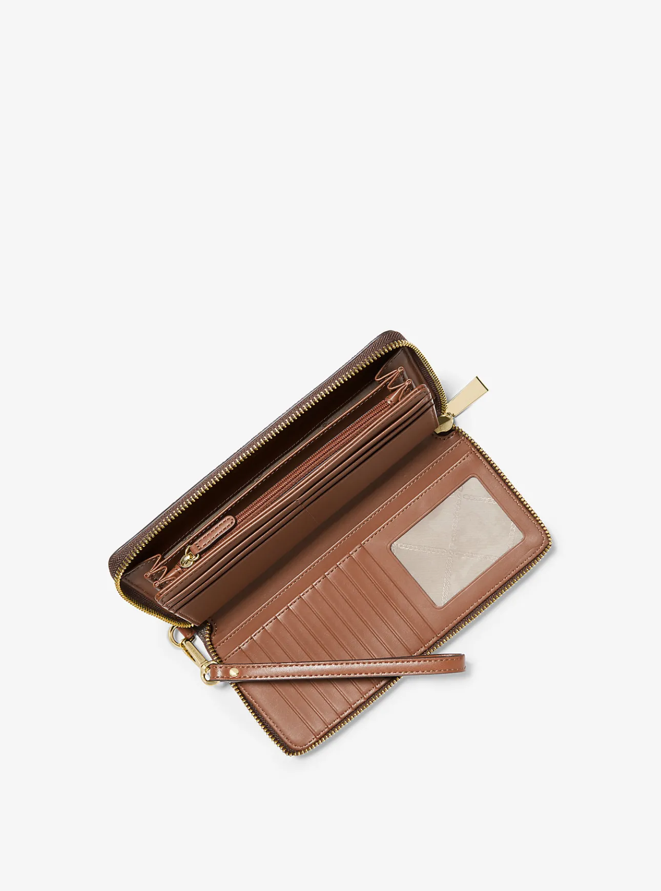 Rendered from Signature-print canvas with leather accents, this sleek wallet is the perfect all-in-one accessory. It features a dedicated pocket for your phone and a wealth of card slots for easy organization. A must-have when traveling or commuting, it can easily be tucked into your carryall for everyday functionality.