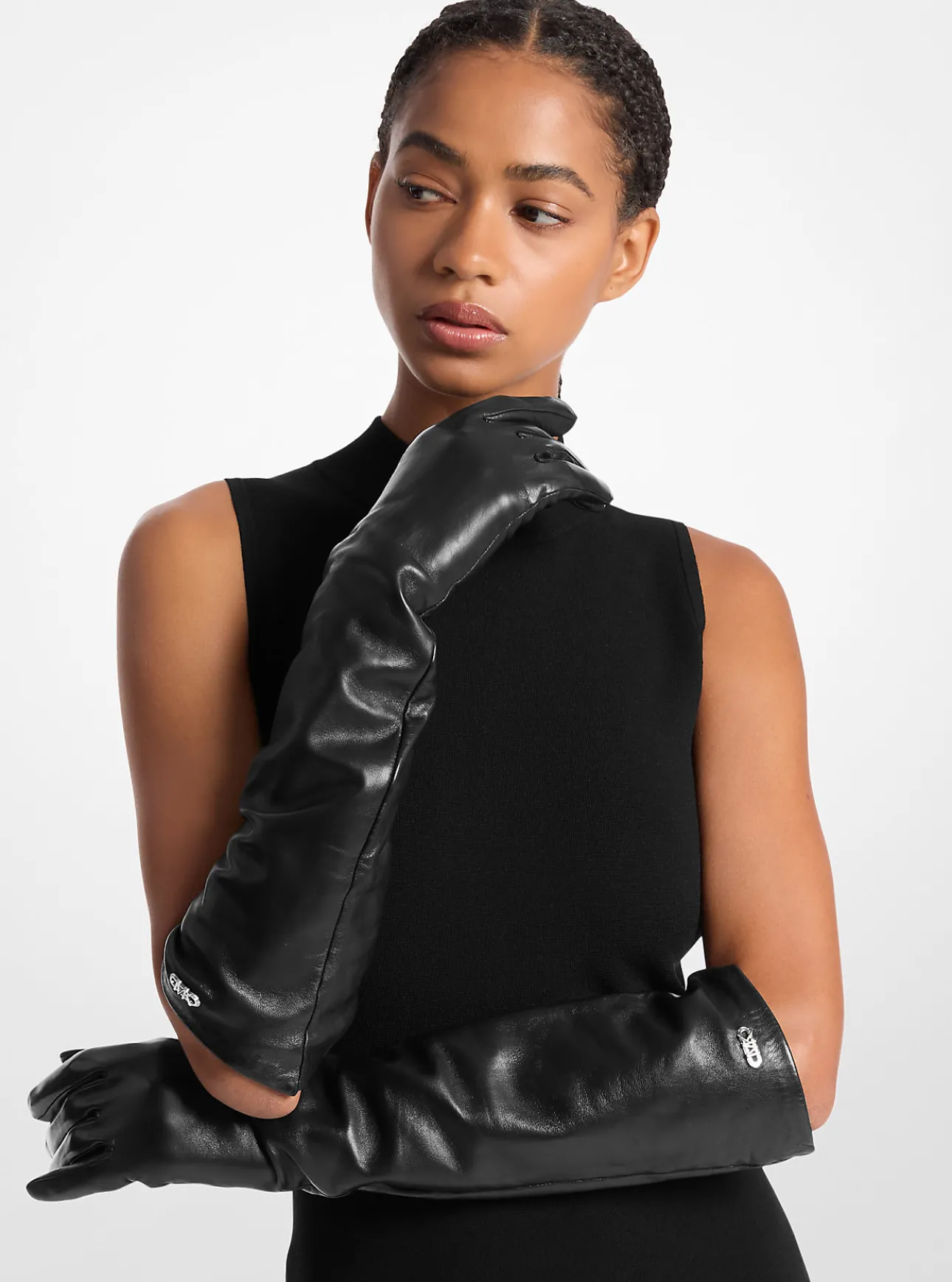 Elevate your glove game with this opera-length leather pair. Available in a range of classic and eye-catching colors, they can be worn past the elbow or scrunched below it. Either way, they’re sure to get compliments.