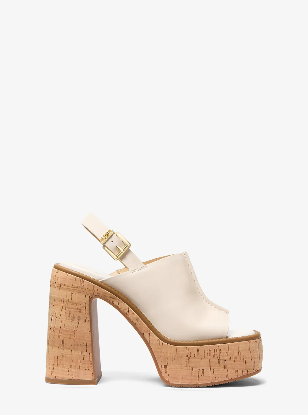 Designed in a ’70s-inspired silhouette, our Leia sandal will instantly elevate casual and tailored ensembles alike. This leather pair features a wide vamp and slingback strap to secure the foot, while a chunky cork platform elongates the leg. Keep them in focus with cropped hemlines.