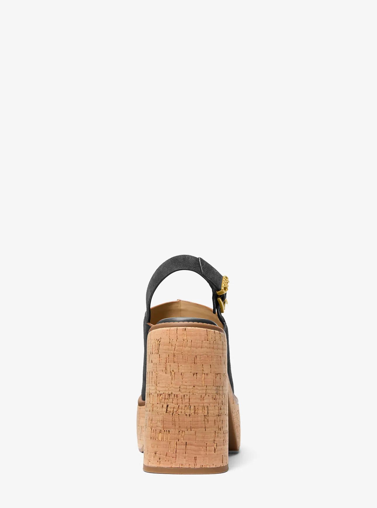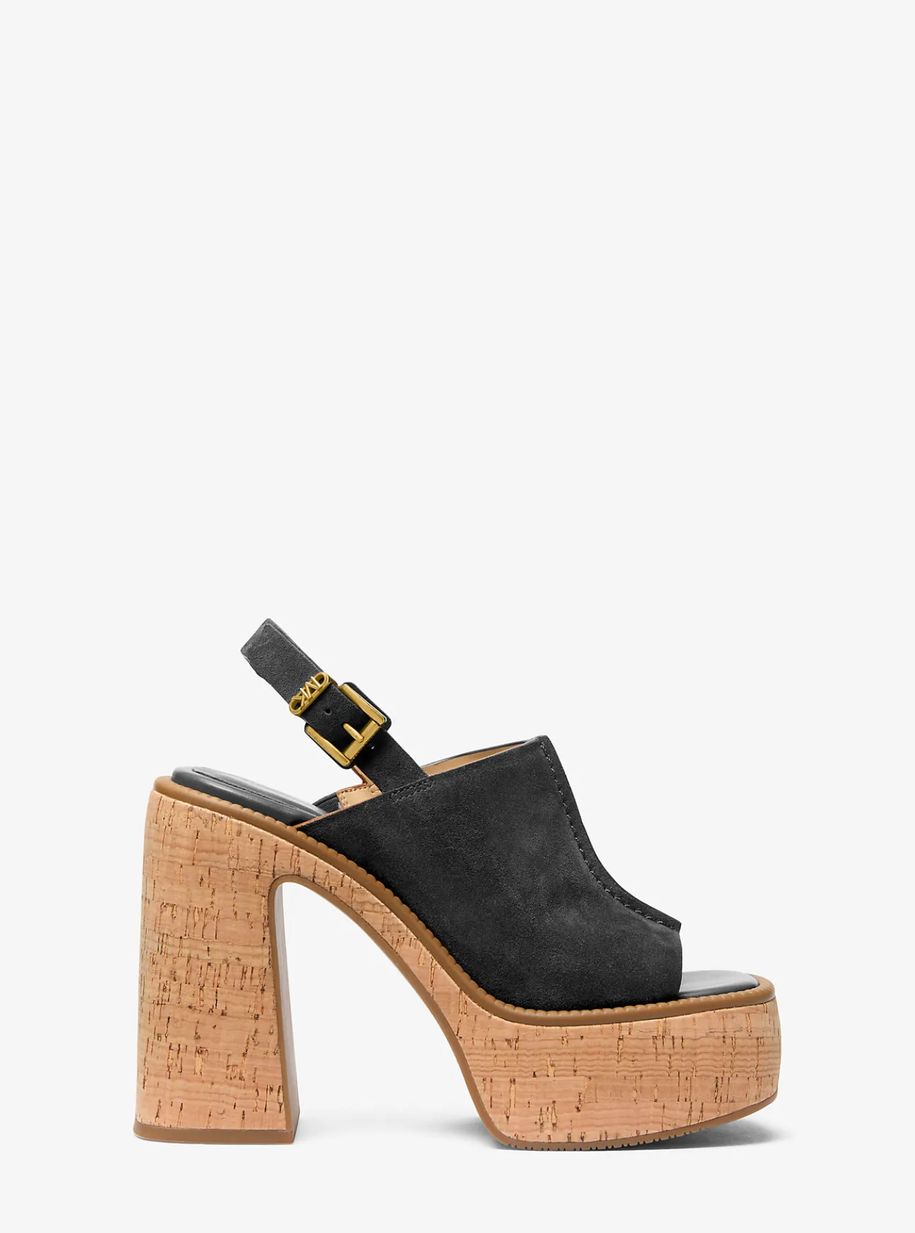 Designed in a ’70s-inspired silhouette, our Leia sandal will instantly elevate casual and tailored ensembles alike. This suede pair features a wide vamp and slingback strap to secure the foot, while a chunky cork platform elongates the leg. Keep them in focus with cropped hemlines.