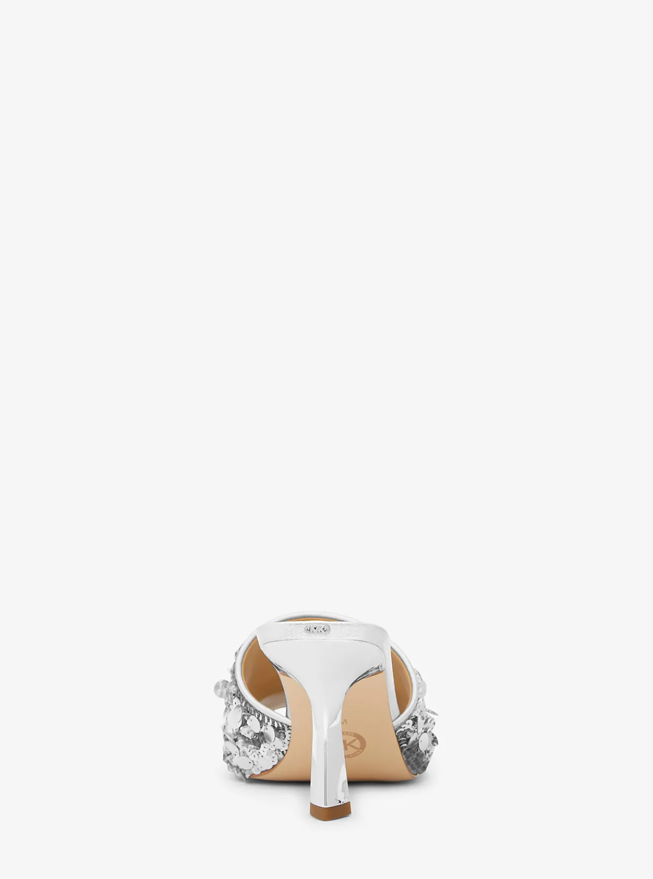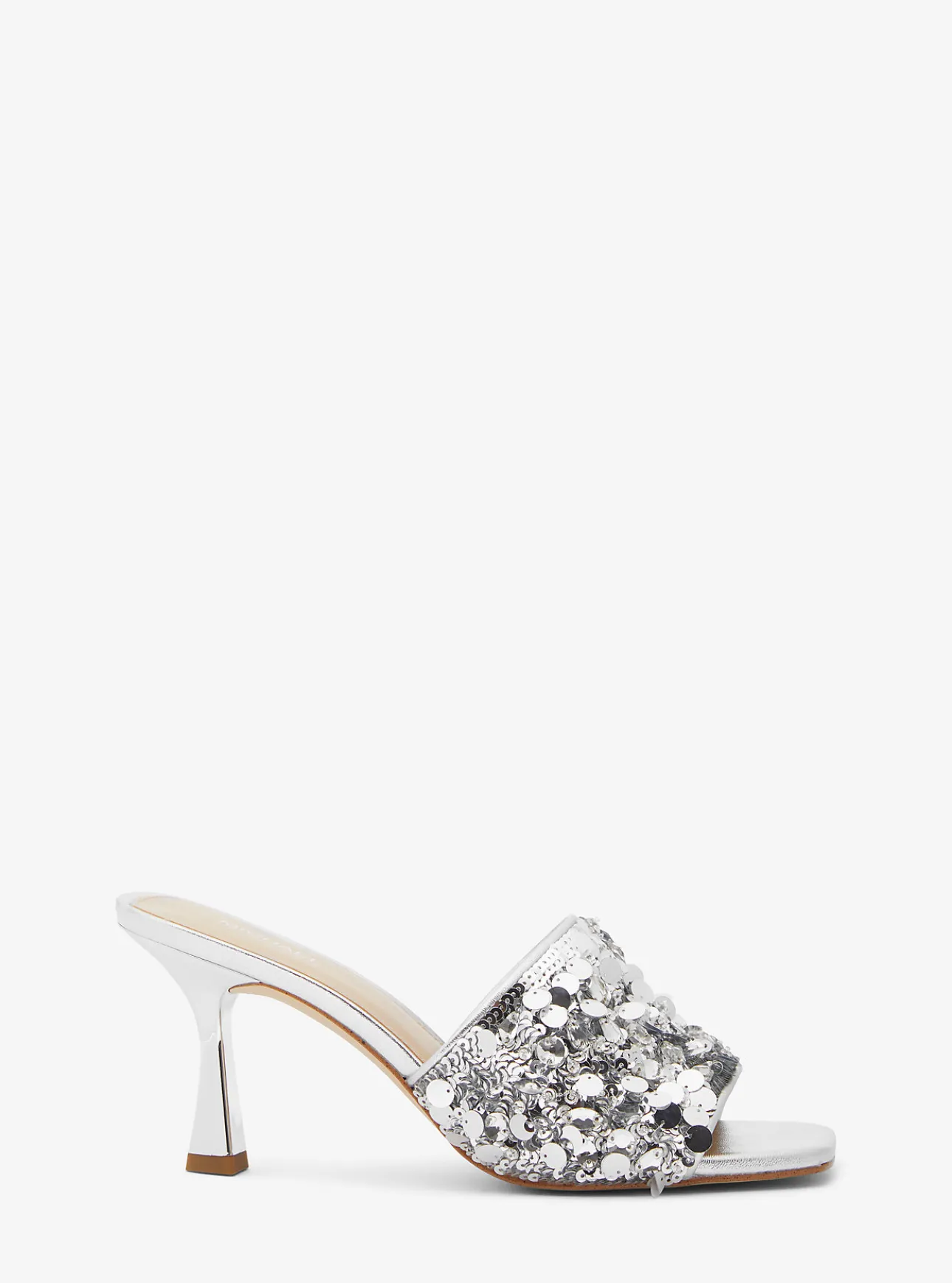 Designed with glamorous parties in mind, our limited-edition Tessa mules are hand-embellished with a sea of glittering sequins and crystals that reflect the light from every angle. The sculptural heels are etched with our Empire logo and add just the right amount of height. Slip them on with your favorite party dress for your next soirée.
