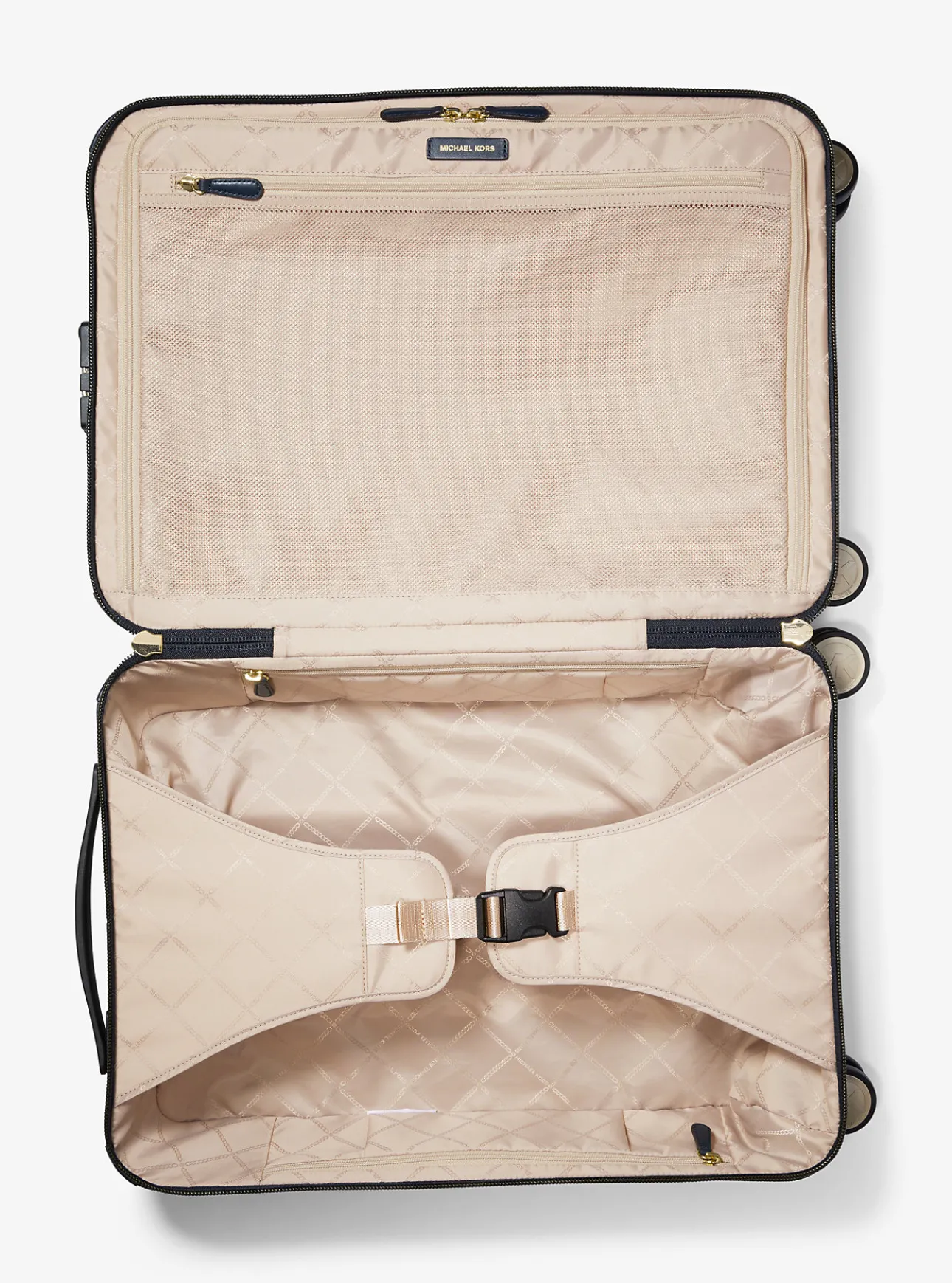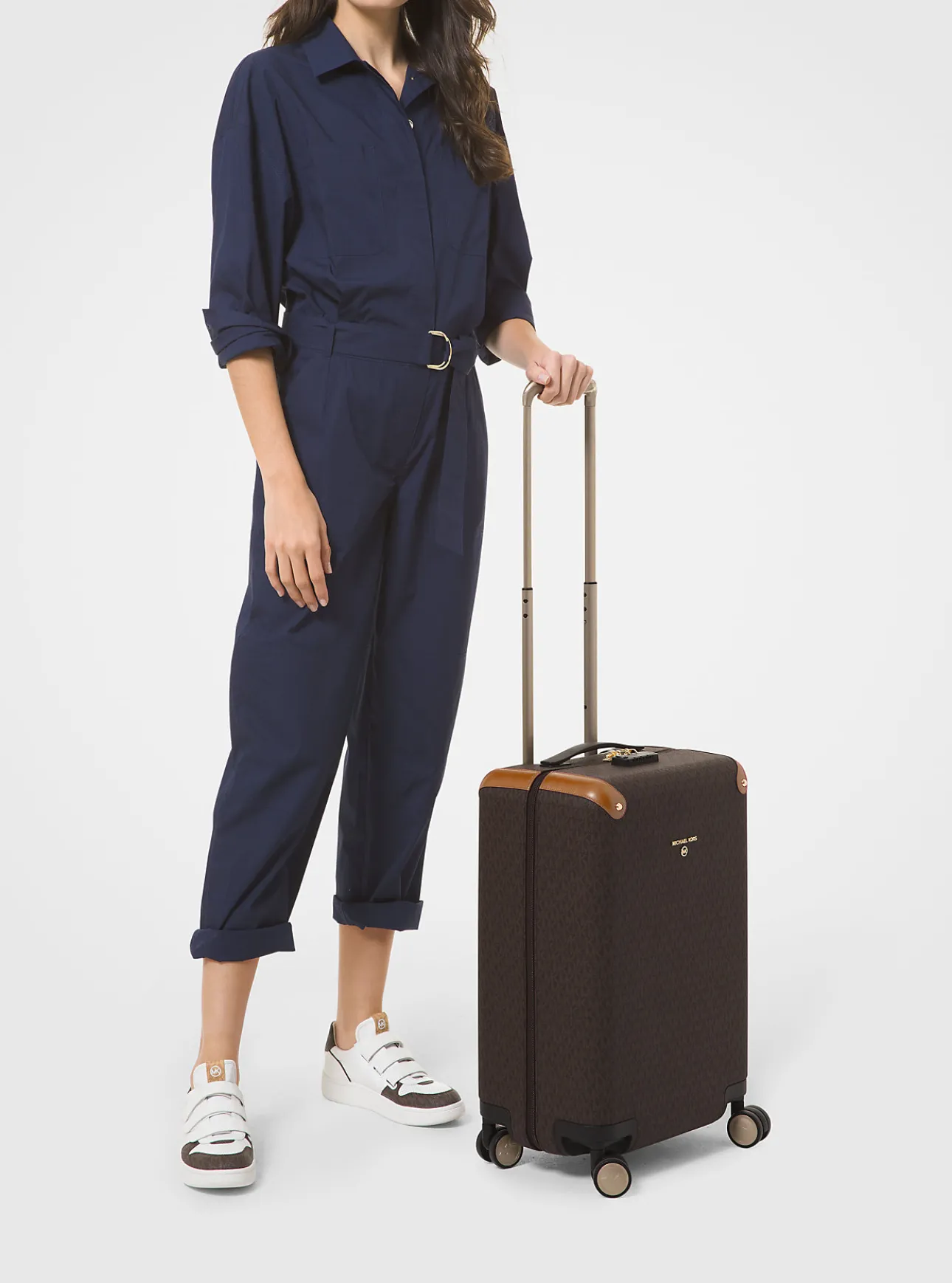 Our logo-print canvas suitcase is the definition of first-class style. Complete with reinforced leather corners and sleek hardware, this carry-on piece features 360-spinning wheels and opens to a compartmented interior to keep the essentials in place during long-haul flights.