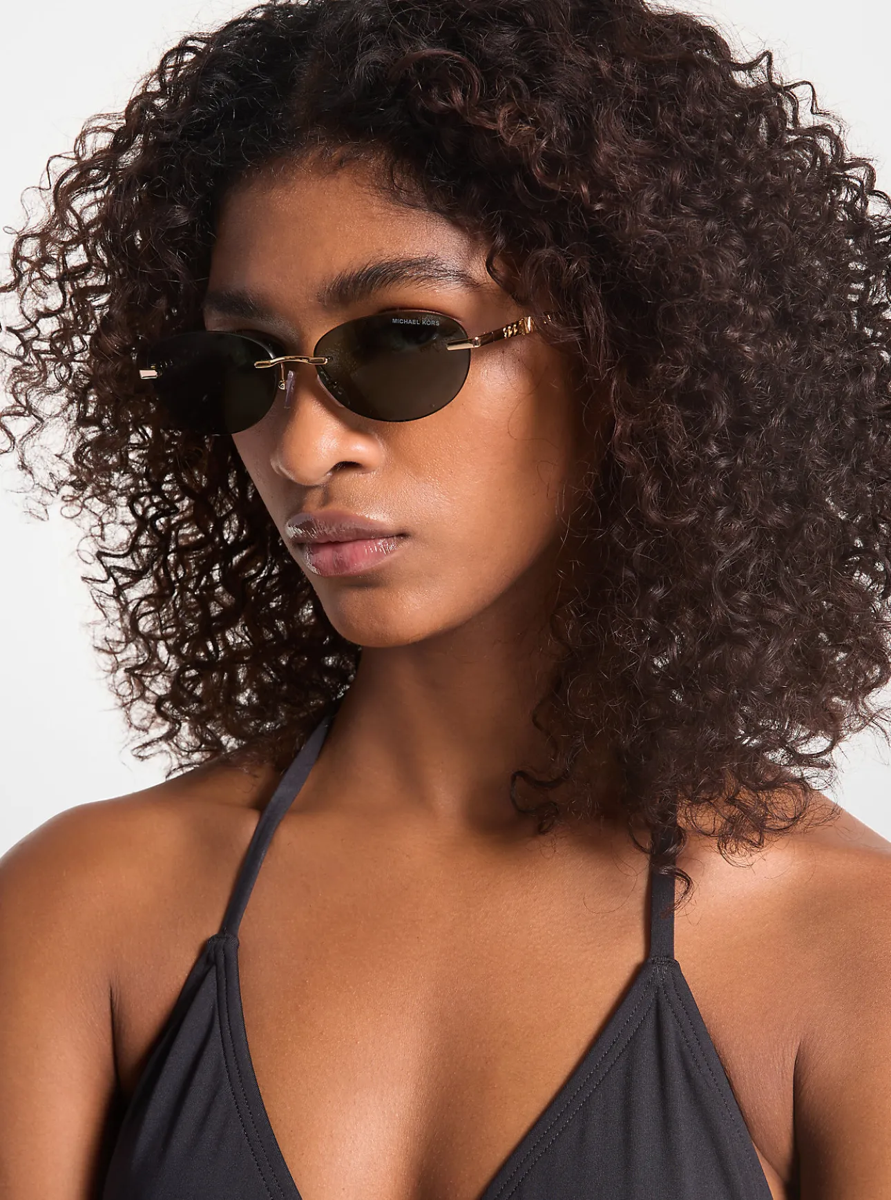Our Manchester sunglasses boast an oval shape that will instantly transform your look. Slim arms adorned with our logo lettering and chain links add the final finishing touches. Try them with the season’s feminine separates.