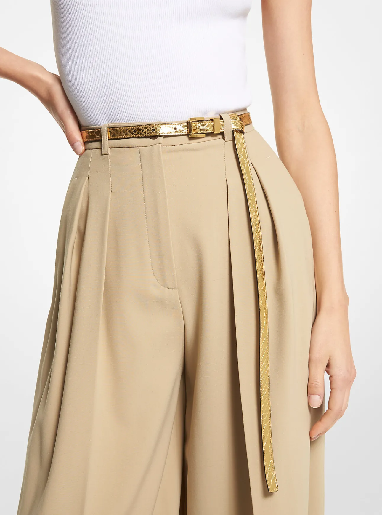 Simple yet striking, this sleek belt is designed in a slim silhouette and tipped with a polished gold-tone buckle. Crafted in Italy from high-shine python-embossed leather, it’s long enough to knot and effortlessly drape over your favorite trousers or dress.