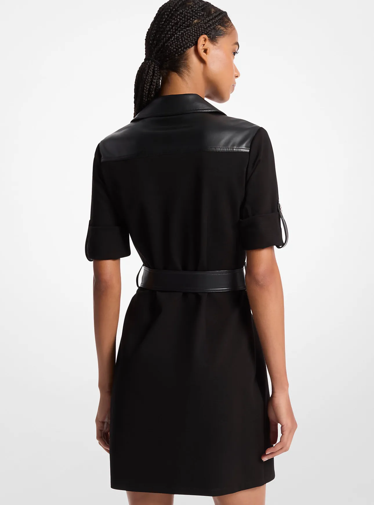 Crafted from ponte with smooth panels and high-shine hardware, this trench dress offers an ultra-femme takes on the wardrobe icon. Wear it by day with loafers, or take it into evening with pumps.