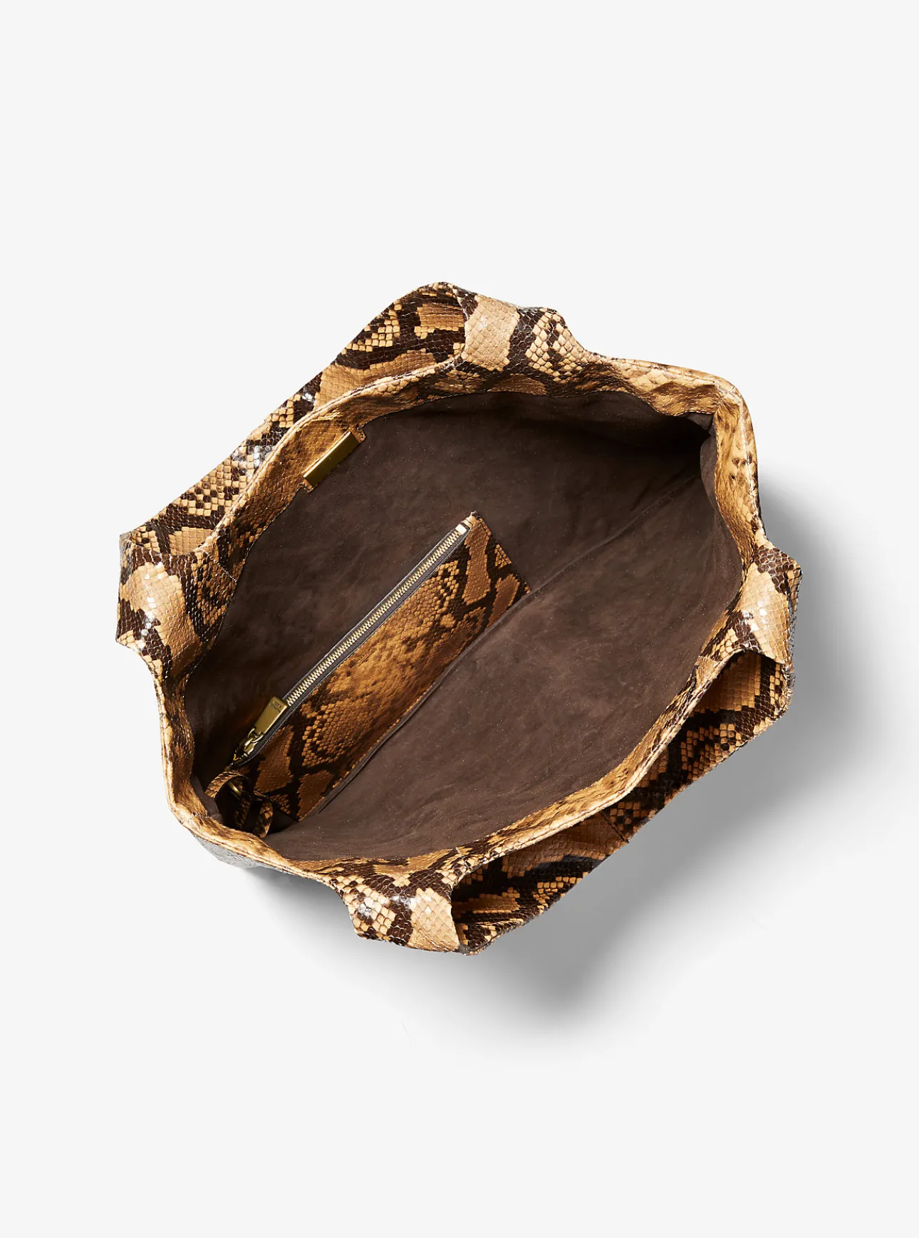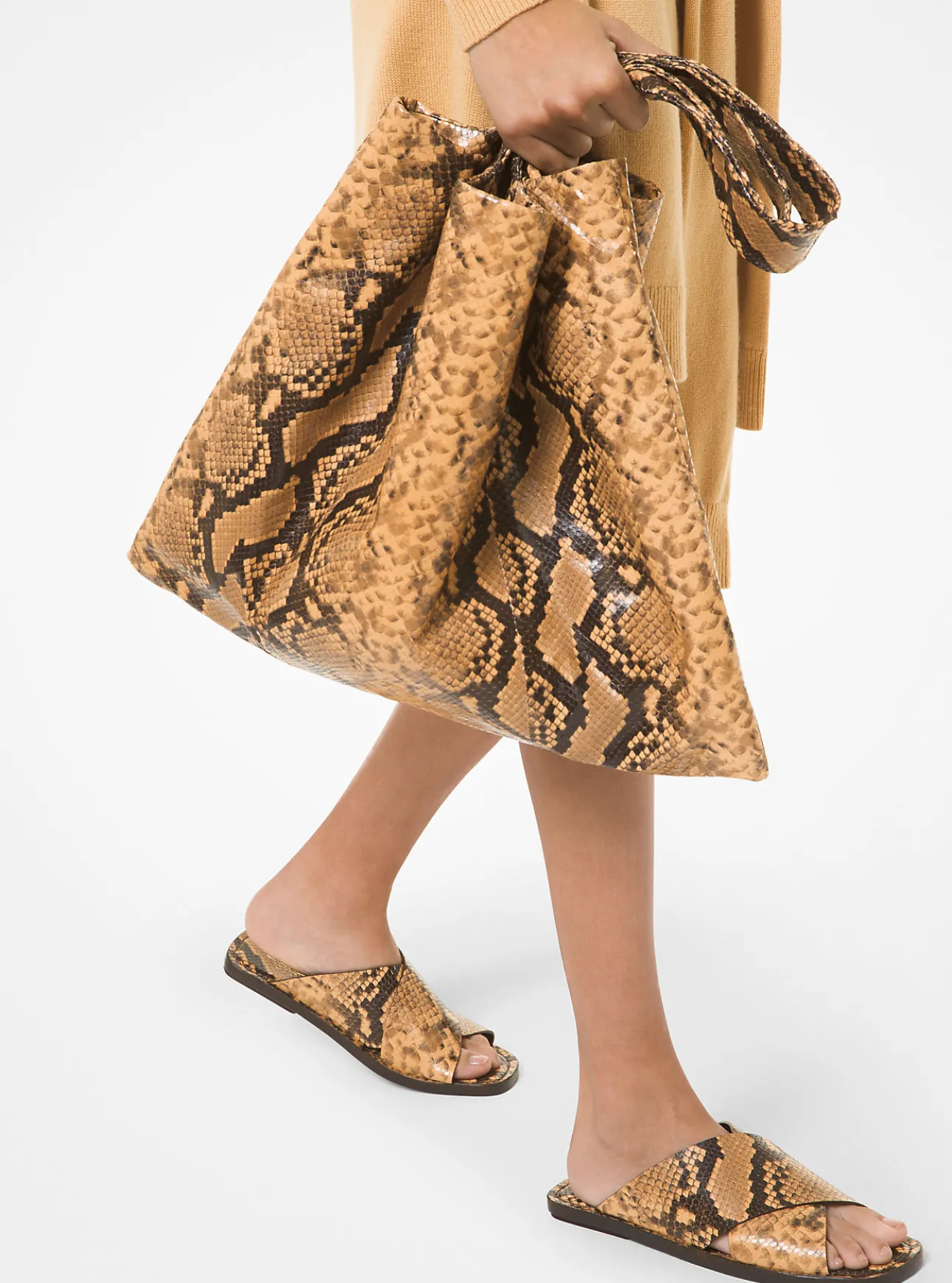 Python-embossed leather construction instills our softly structured Monogramme tote bag with exotic appeal, while a scaled-down MKC charm tops this Italian-made carryall with signature panache. With a spacious, suede-lined interior, it’s the ultimate companion from the city to the shore and everywhere in between.