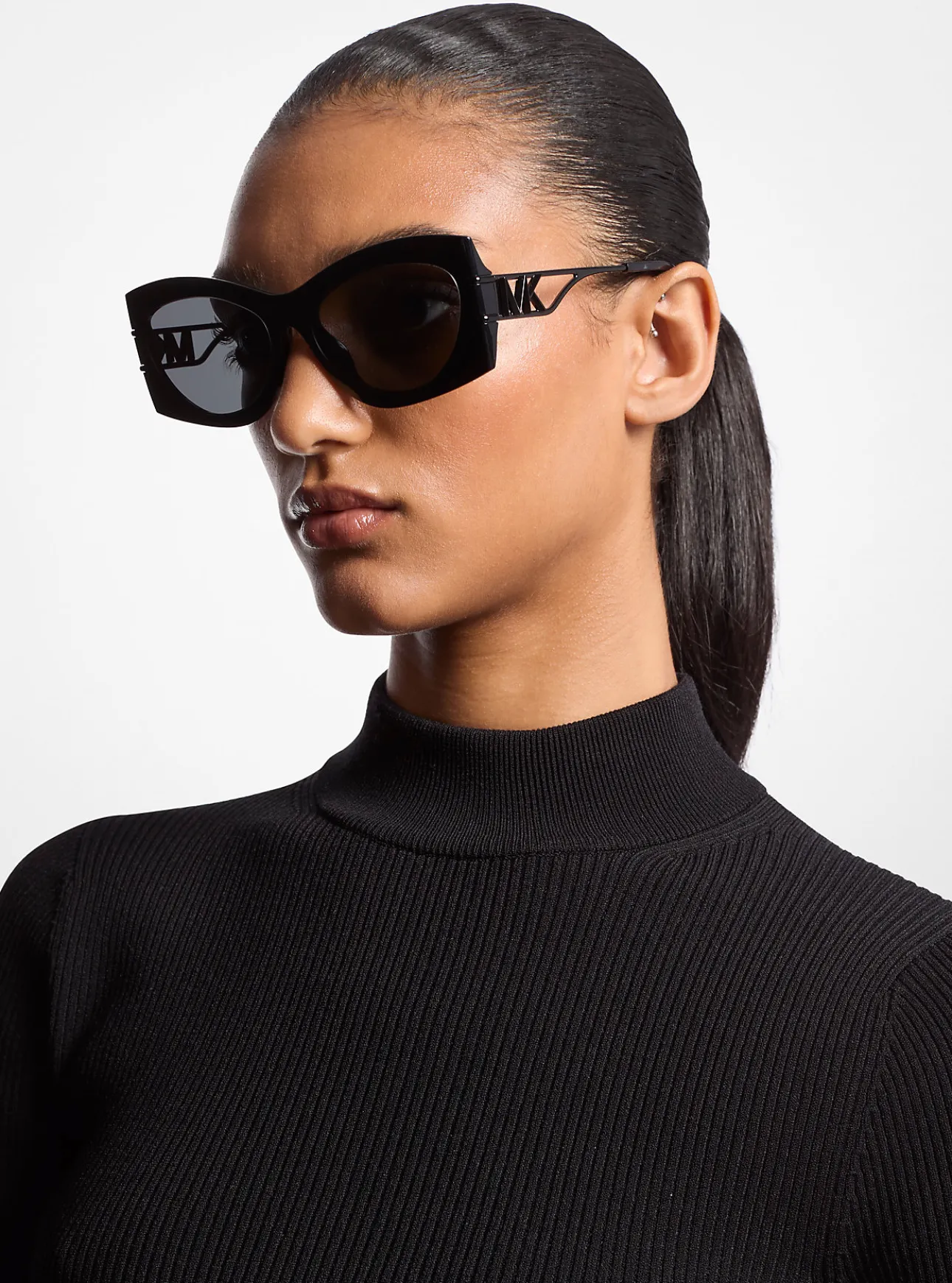 Our Navarra sunglasses give new meaning to eye-catching style. Designed in an oversized rectangular silhouette, this ultra-modern style features faceted “MK” detailing on the arms added drama.