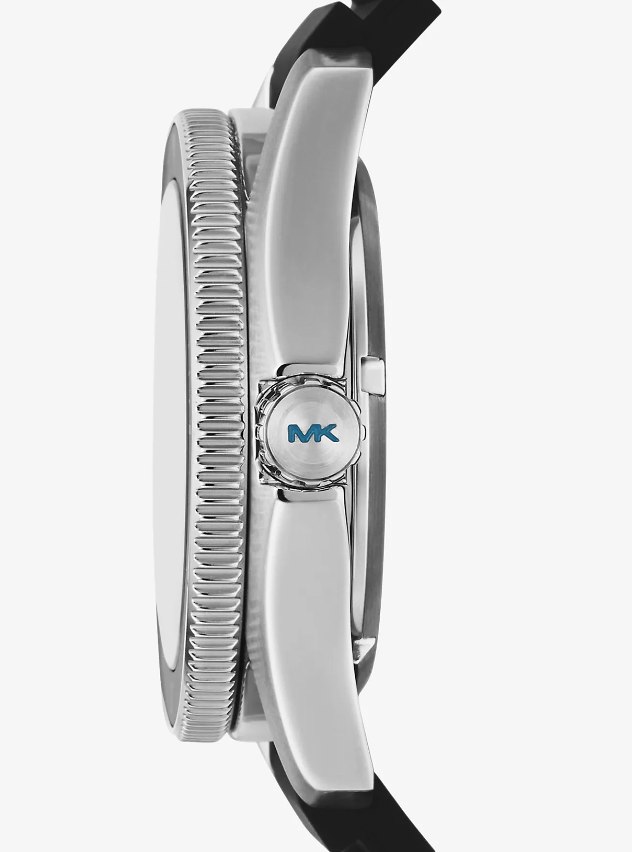 Dive into your next adventure with our Maritime watch. Built to be resilient and withstand most underwater conditions, this sporty timepiece will confidently take you up to 200 meters underwater with a screw down crown mechanism. The adjustable silicone strap wraps securely around the wrist, while the graphic face features a classic 3-hand dial and Super Lume technology that allows the wearer to track time in low light conditions.