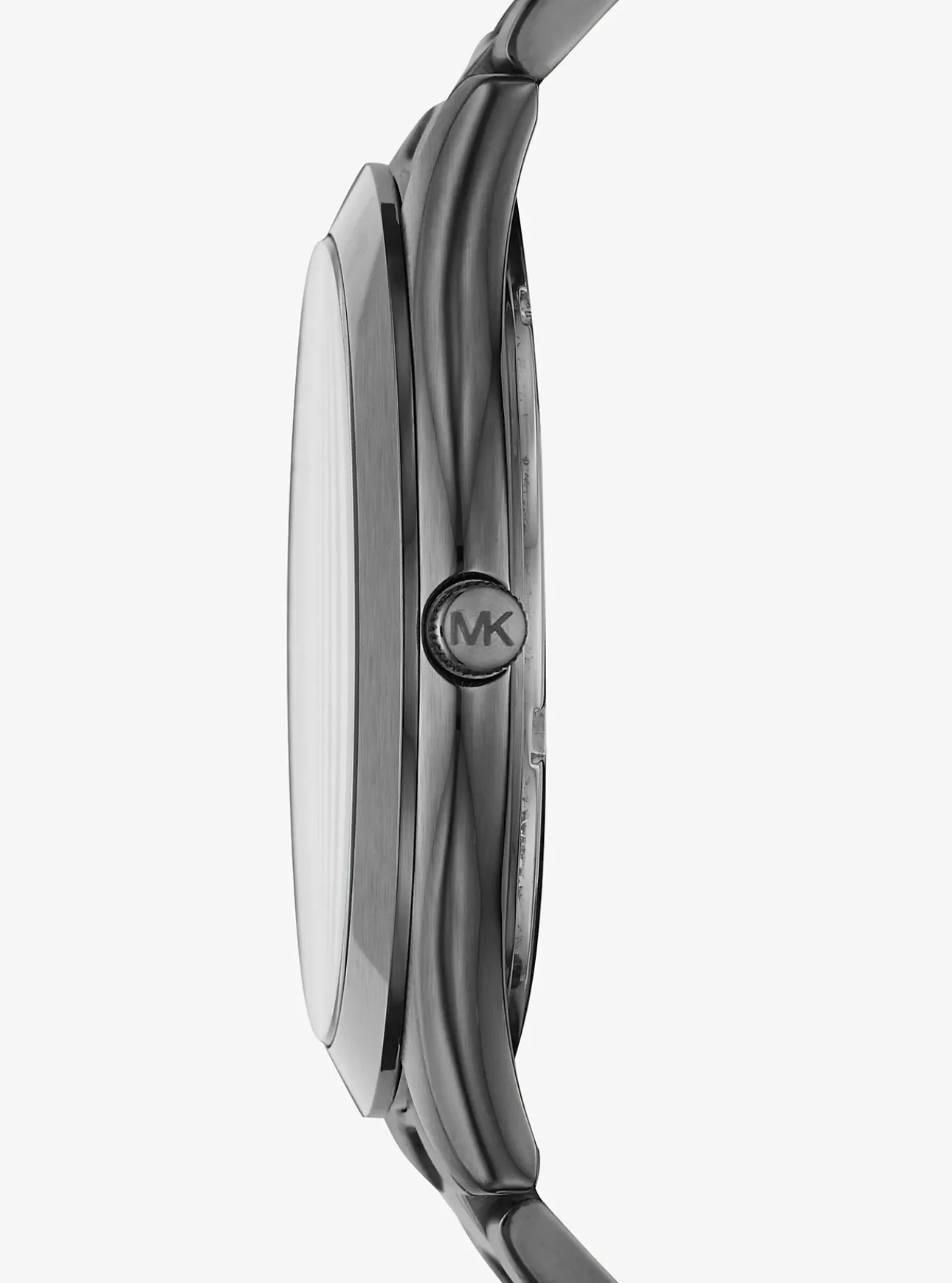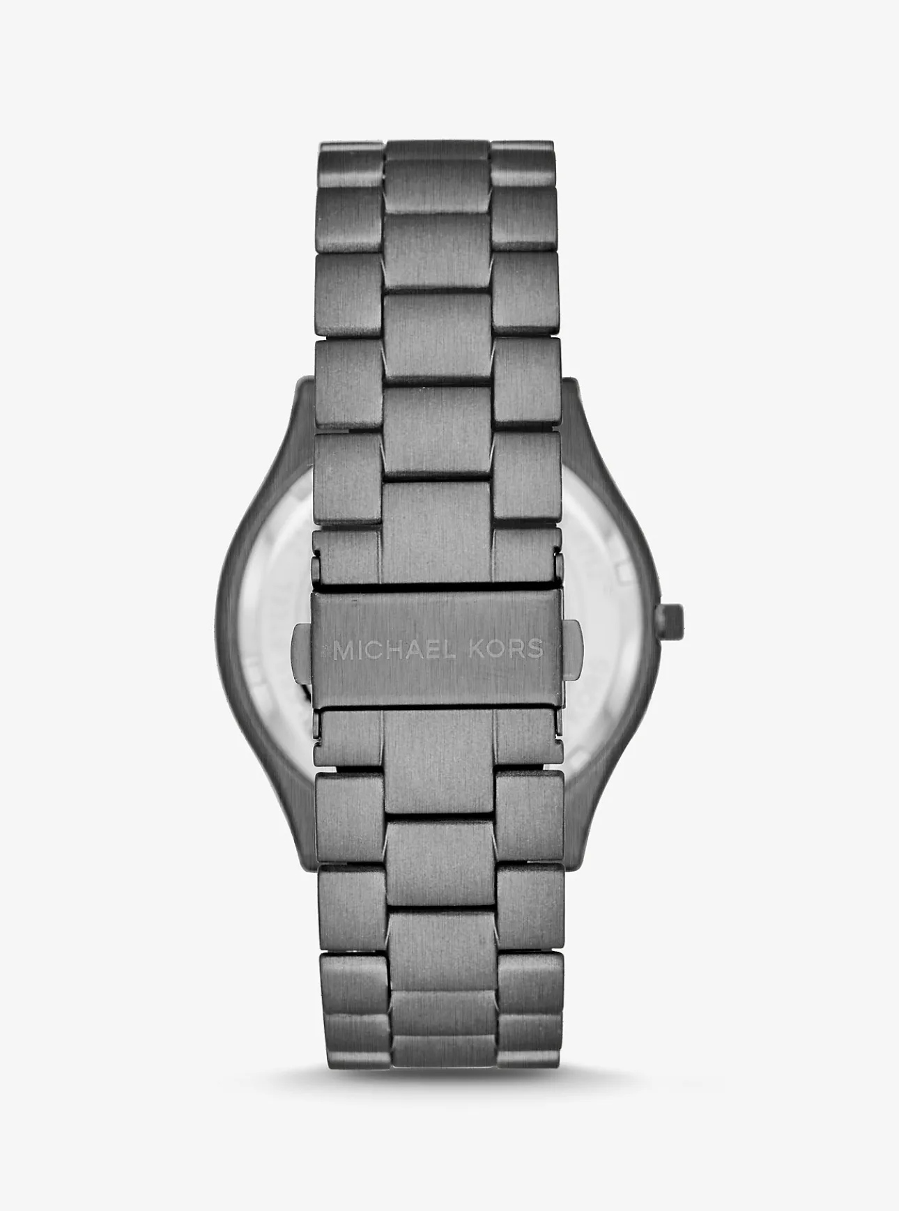 A timeless gift set for the one who has it all, this duo includes a Saffiano leather wallet and a refined timepiece for a sophisticated pairing. A perennial favorite, our iconic Slim Runway watch is designed in gunmetal stainless steel and features a sleek, understated dial for a modern finish. Wear it with casual-cool separates and tailoring alike.
