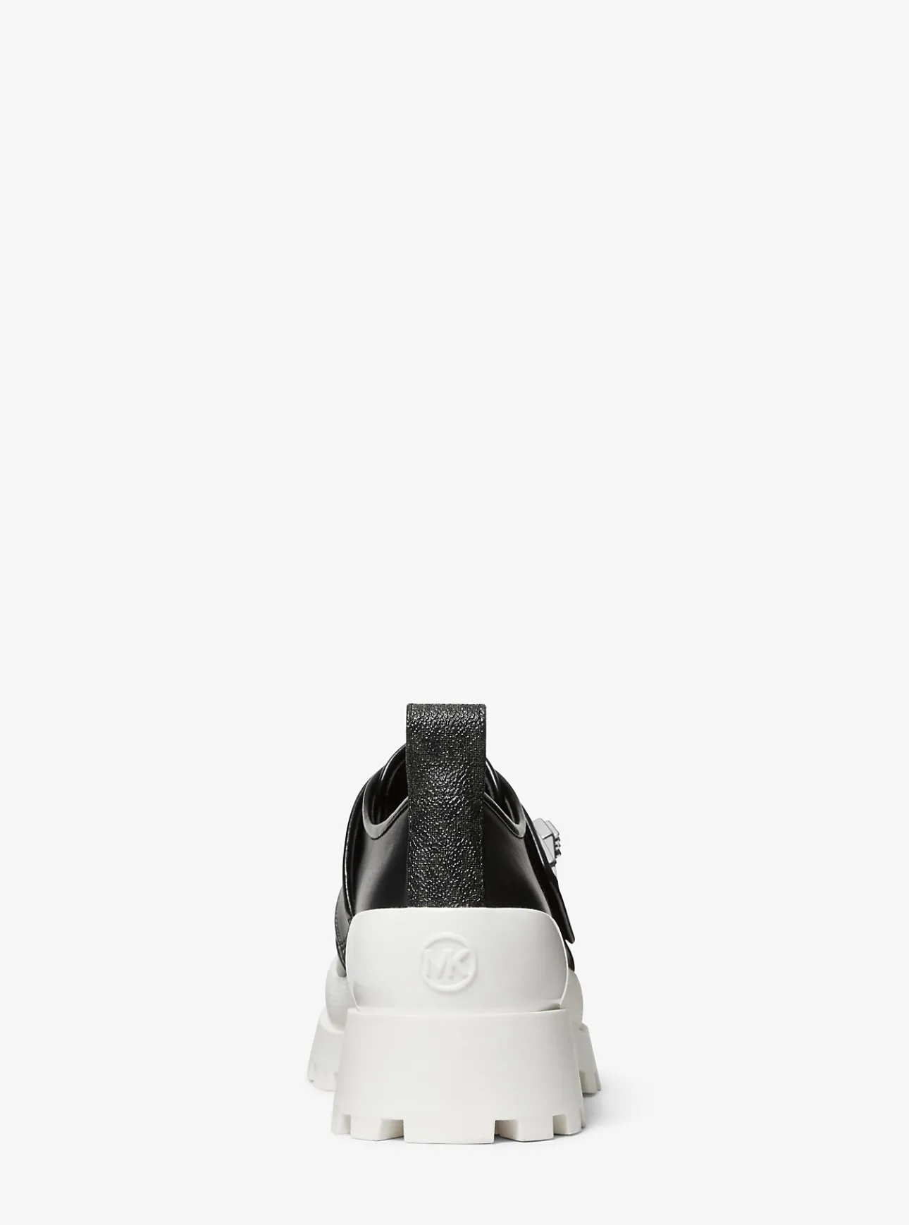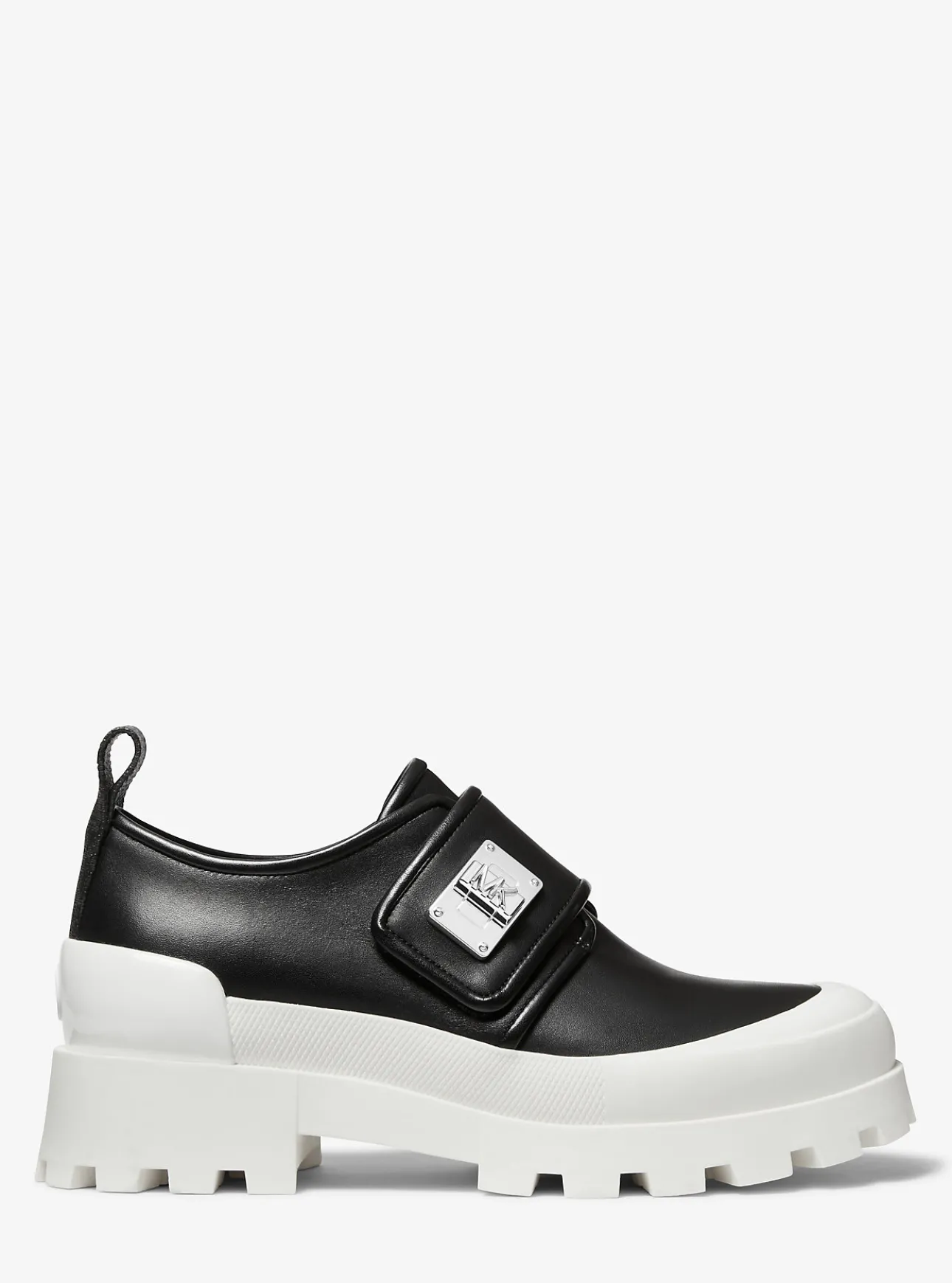 Meet Padma: a loafer with a contemporary twist. The pair is crafted from leather and features glossy turn- lock hardware for a luxe twist, while rubber lug soles toughen up the design. We love how they look teamed with tailored shorts, pleated skirts, and voluminous cargo pants.