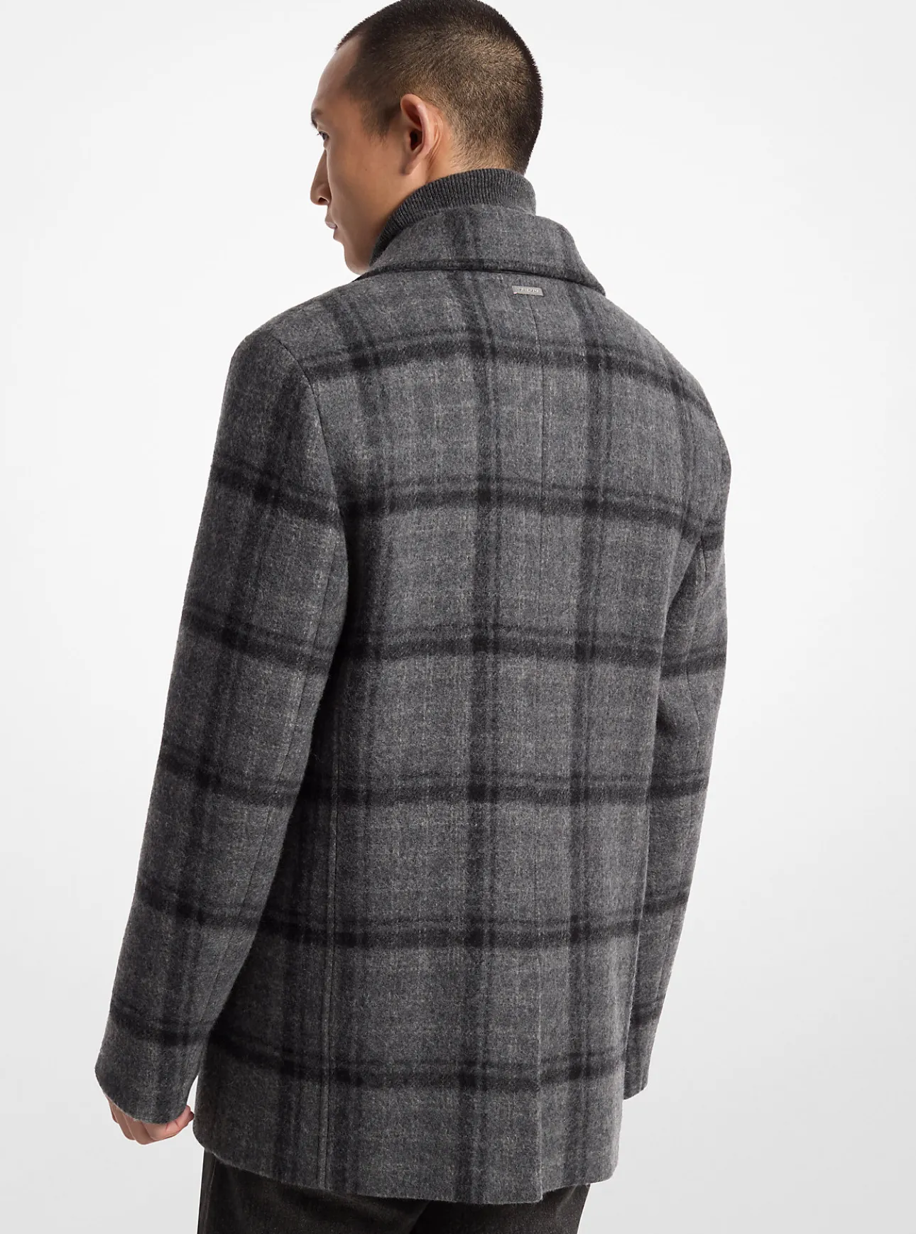 A classic peacoat is essential to any winter wardrobe, and this one is destined to be in rotation for years to come. Made from a boiled-wool blend in an oversized check, the double-breasted silhouette is fully lined and finished with zippered pockets.