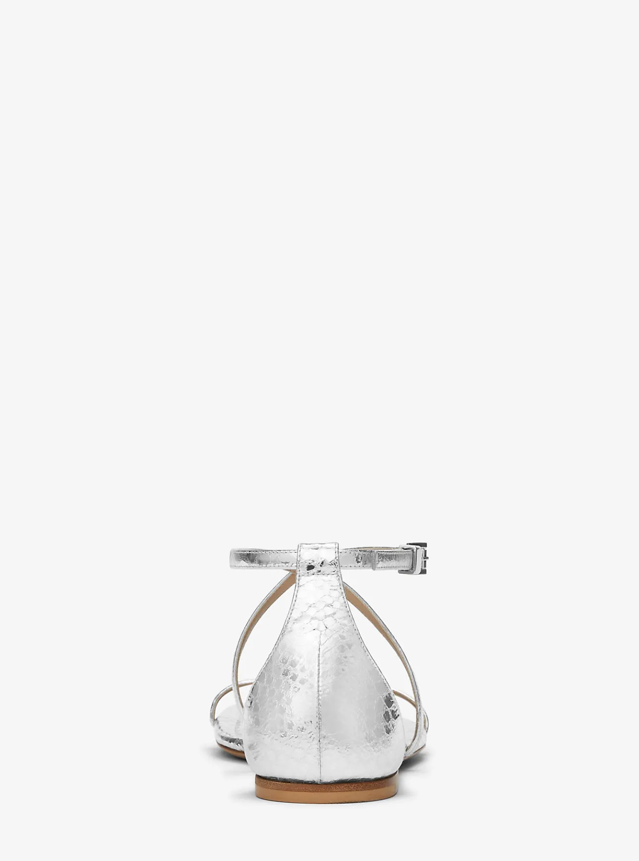 Introducing Polly: a minimalist sandal that serves as a perfect complement to the season’s resort-ready looks. Slim crossover front straps define this metallic python-embossed leather style, which rests on a low heel for comfortable wear. Style yours with a halter dress to exude effortless charm.