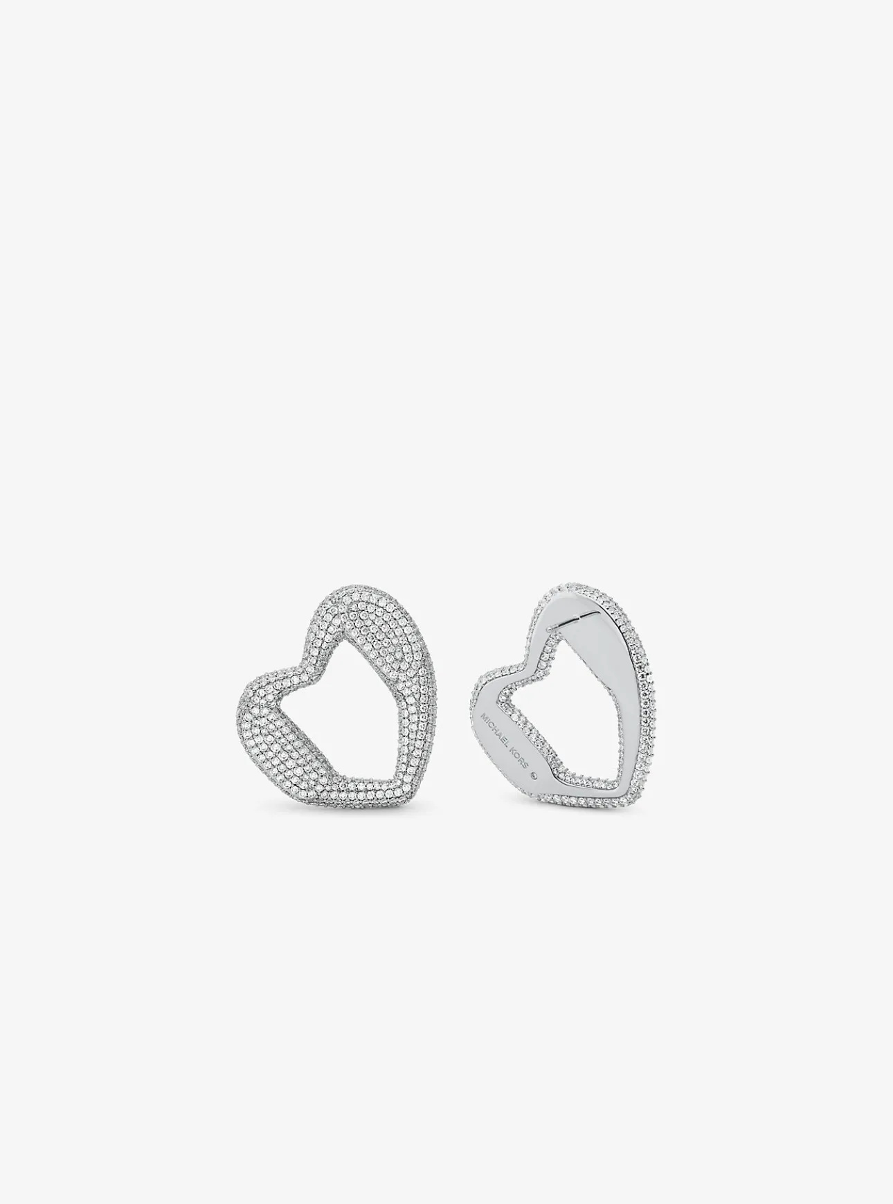 These sculptural heart-shaped earrings make a bold statement. They’re made from brass that’s plated with precious metal and covered in sparkling pavé. Wear solo or with the matching necklace. (They also make a special gift.)