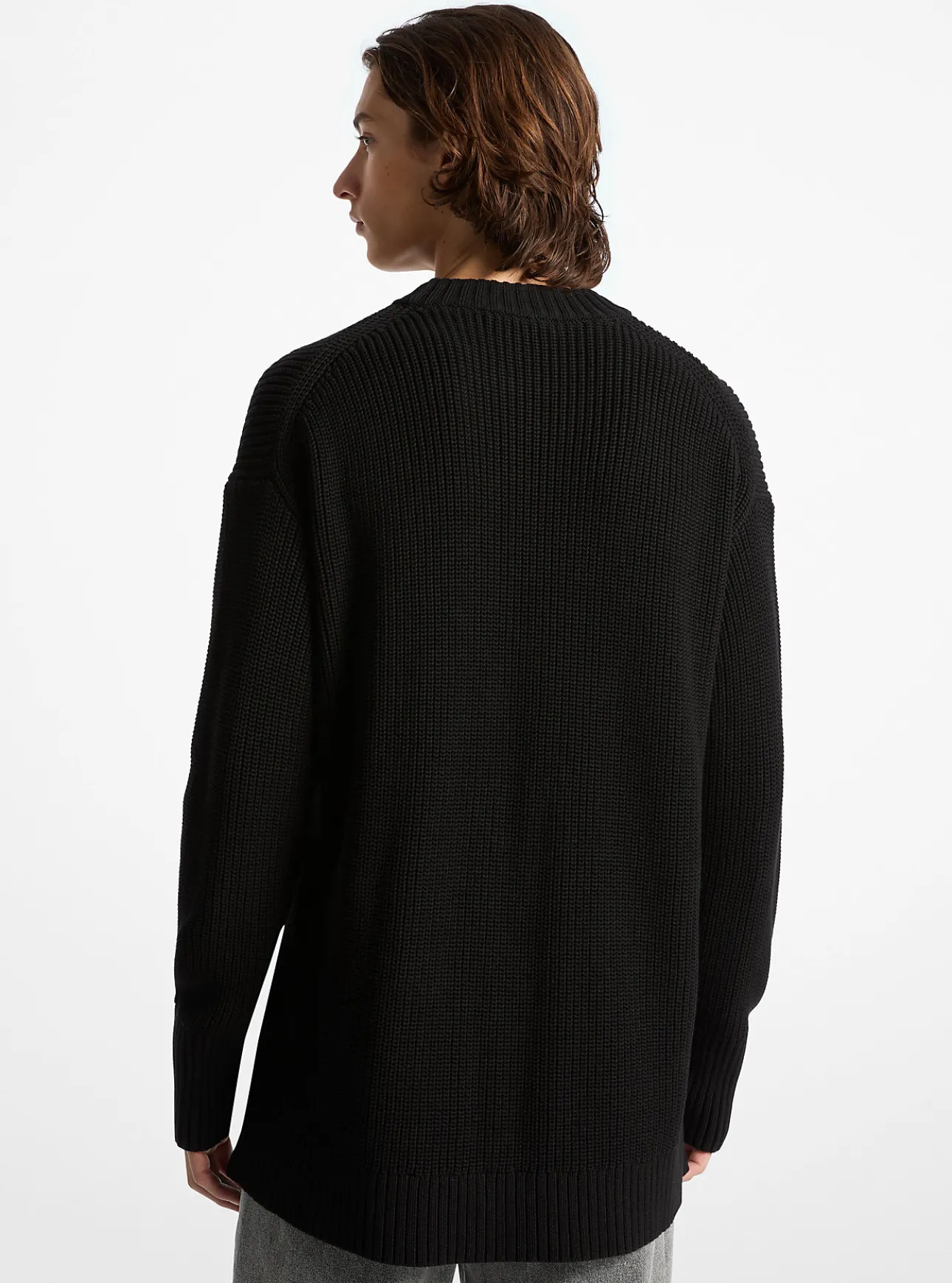 Destined to be a wardrobe favorite, this ribbed-trim cotton sweater is defined by a textured handle and relaxed shape for easy layering. Reach for it to add a touch of warmth to jeans, trousers and more.