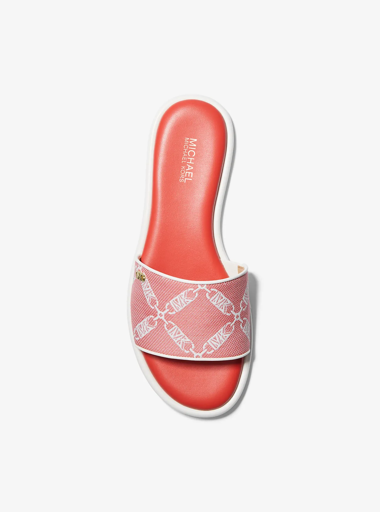 Designed with a two-tone finish, our Saylor slides are a study in understated glamour. Featuring a streamlined profile and a woven take on our Empire Logo print, they offer an iconic touch to a plethora of ensembles.