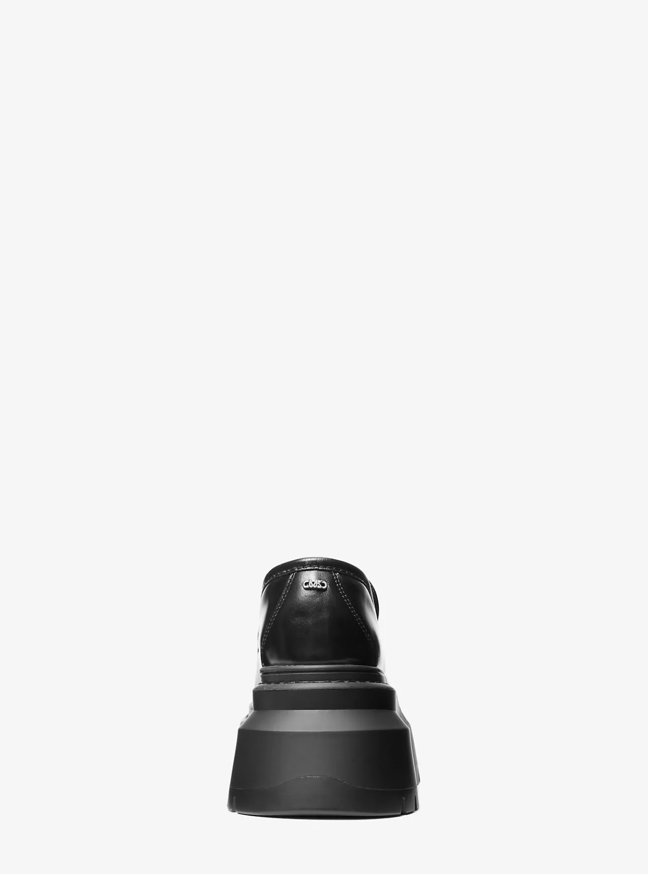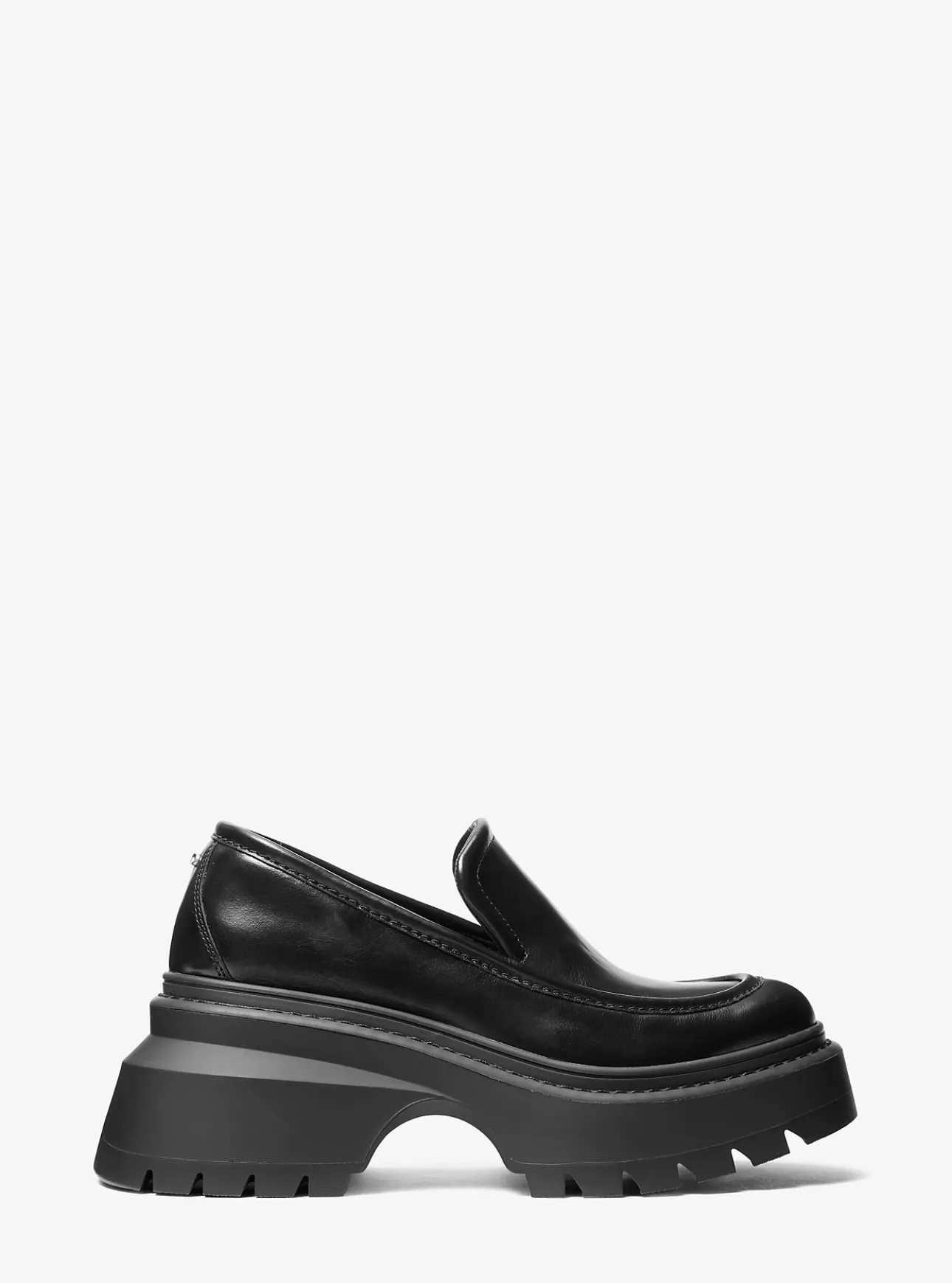 Meet the Shiloh: a classic loafer with future-chic twist. The glossy leather upper sits on an exaggerated rubber platform with rubber treads. Balance the fashion-forward silhouette with cargo trousers or wide-leg jeans.