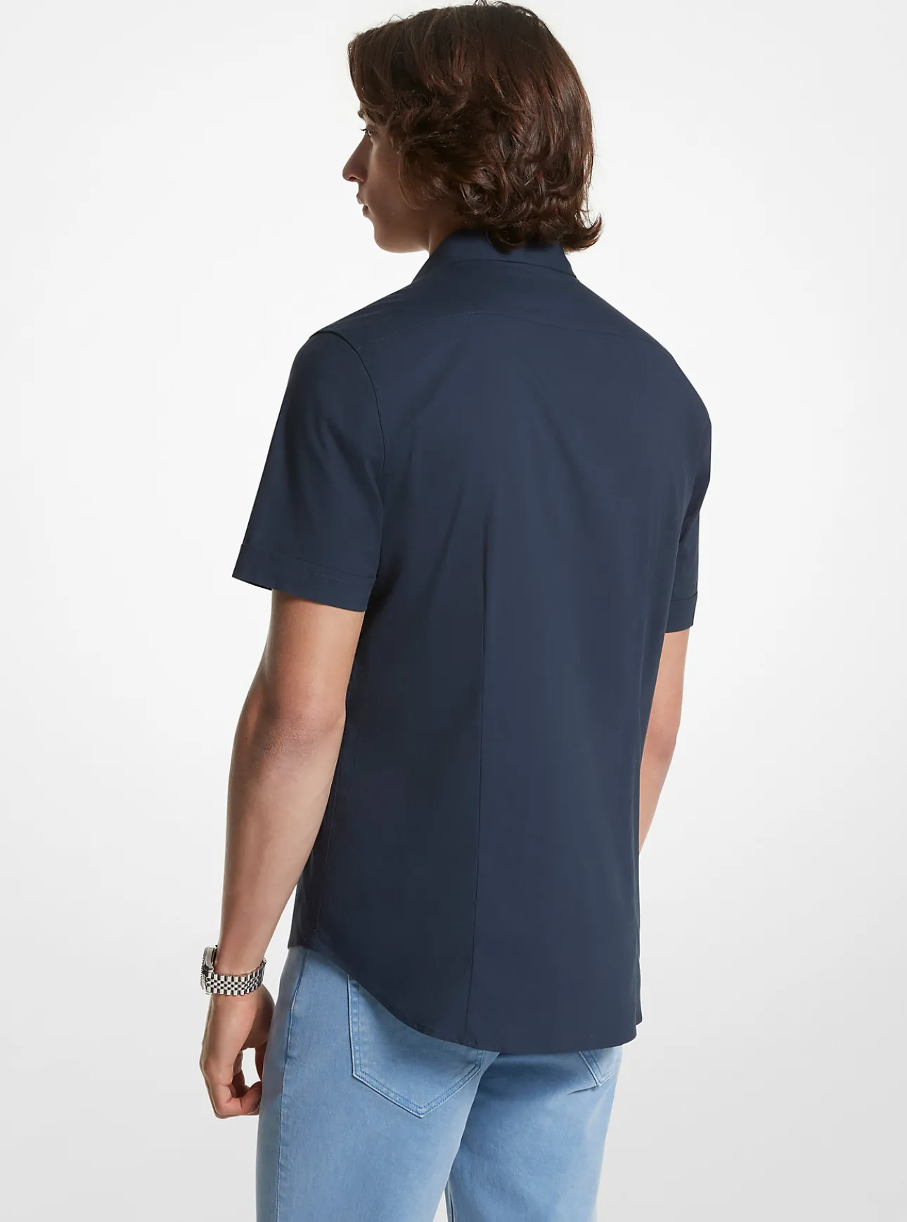 This shirt is made from stretch cotton chosen for its soft, smooth hand and comfortable fit. It features a button-down collar and neatly cuffed short sleeves—making it an essential style for warm weather.