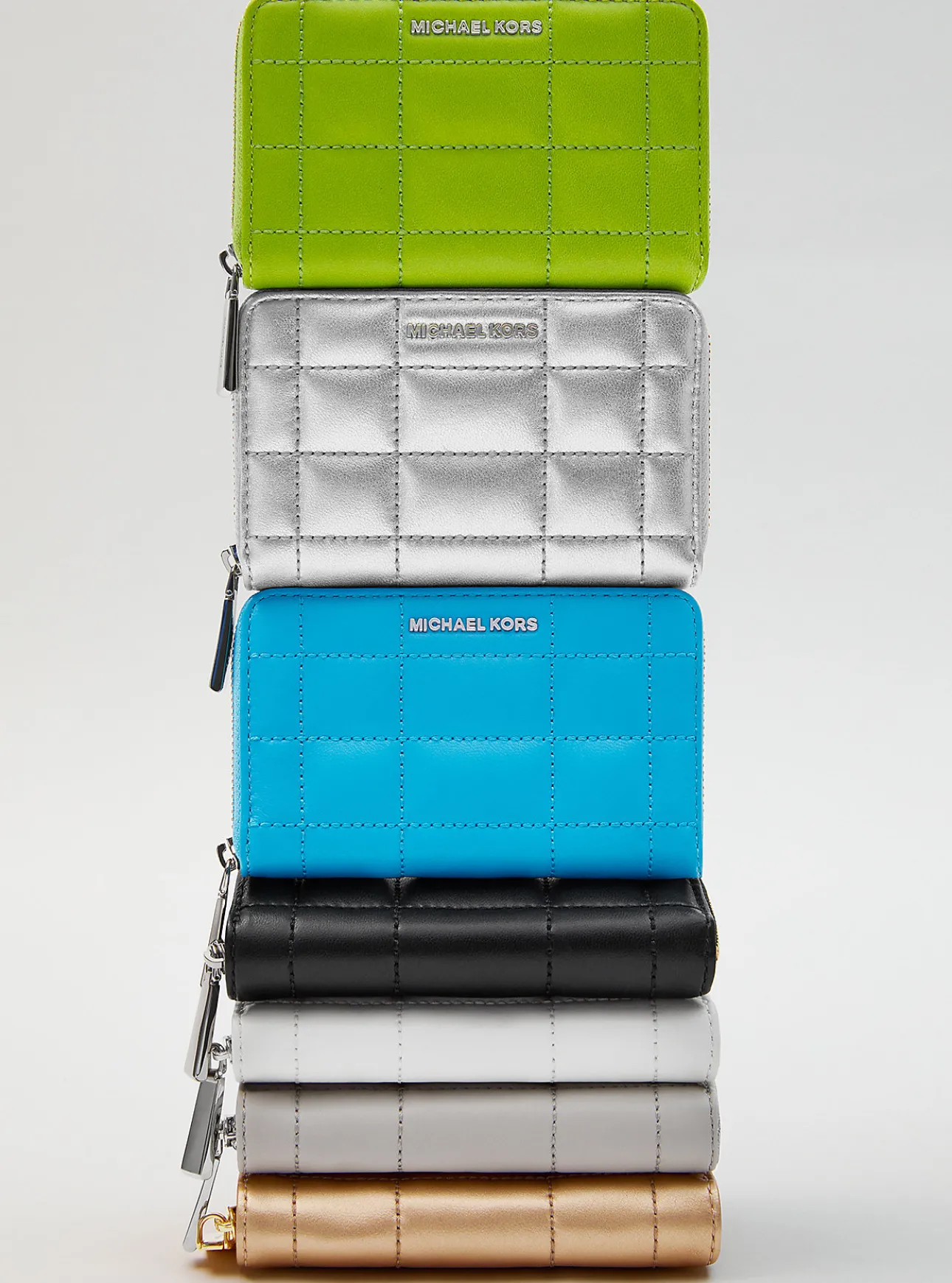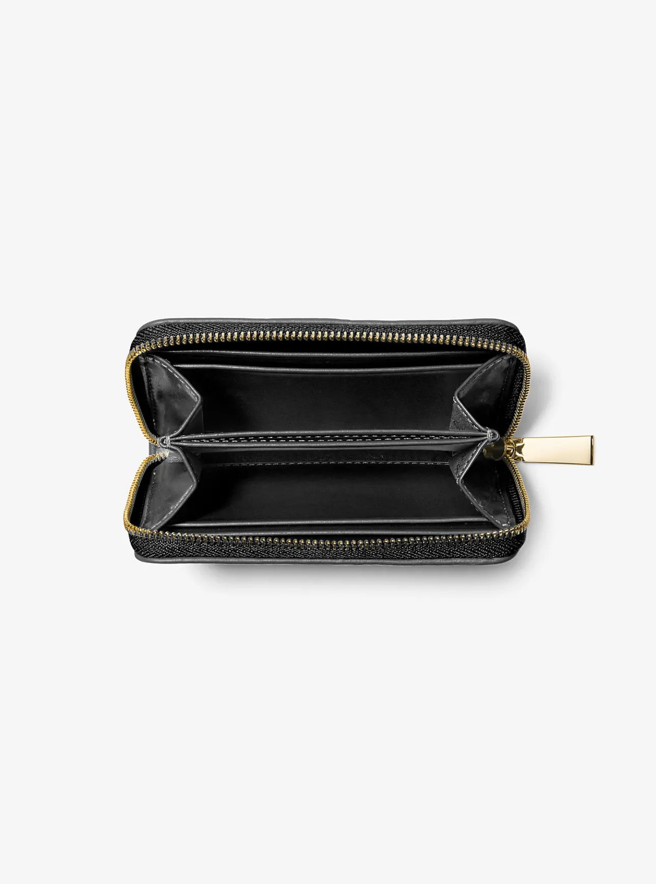 A compact, zip-around silhouette, this quilted leather wallet is finished with gleaming gold-tone hardware. Throw it into your favorite bag as an effortlessly chic accessory.