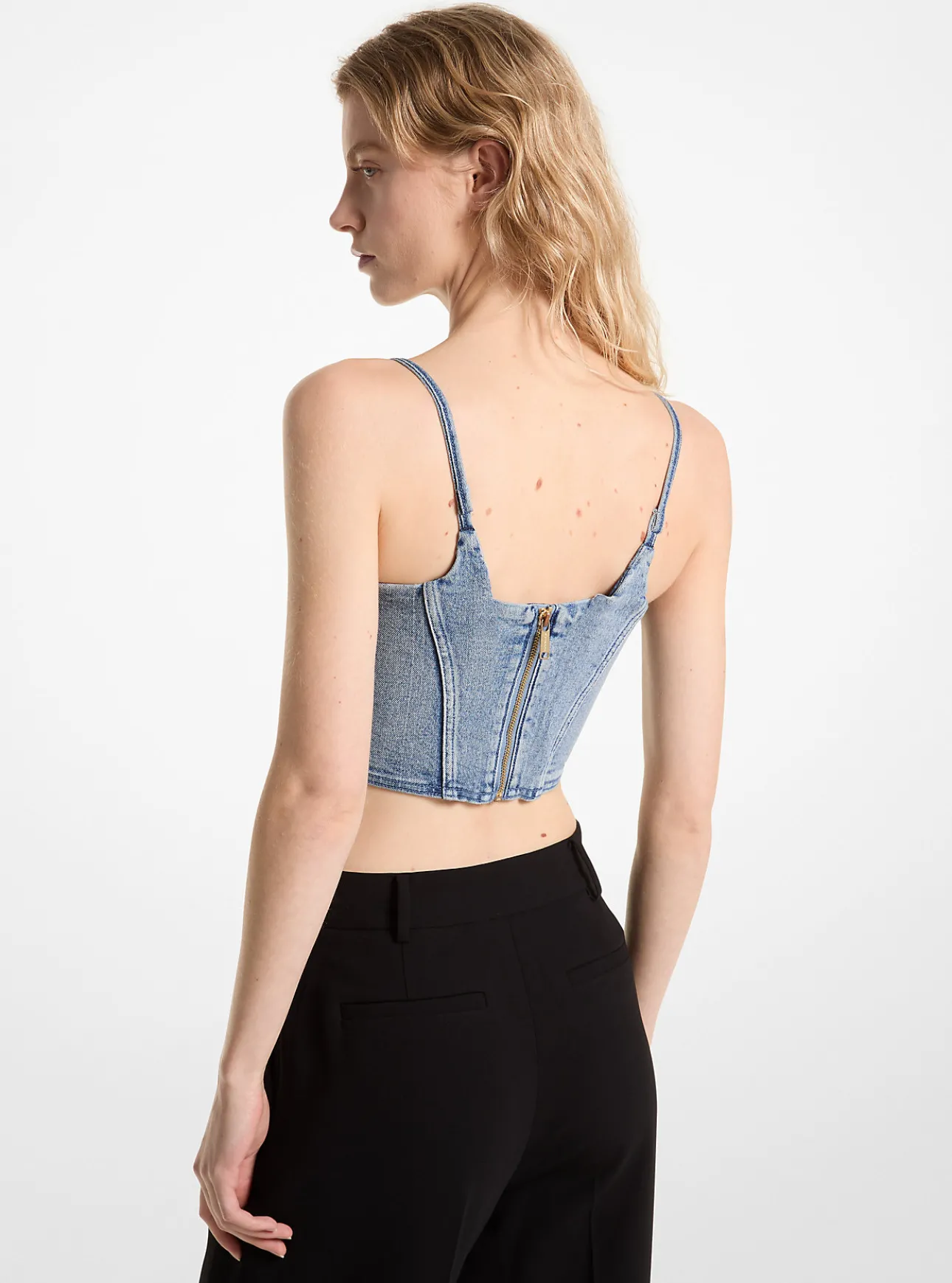 Unmistakably feminine yet utterly cool, this denim corset top is a decidedly fun take on the romantic classic. With seamed details and a zip-back closure, it makes a statement worn alone or layered over a T-shirt. Expect compliments.
