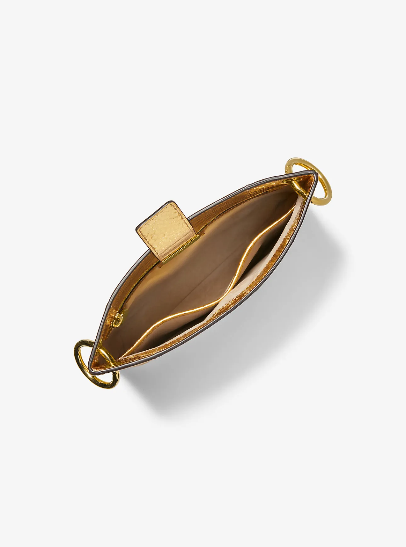 A slim, chic take on the timeless tote, the Tate draws inspiration from the barefoot glamour of luxe vacation destinations like Capri. This messenger bag is finely crafted in Italy from metallic python-embossed leather and features a soft suede lining. An adjustable crossbody strap accented by two polished rings completes the effect.