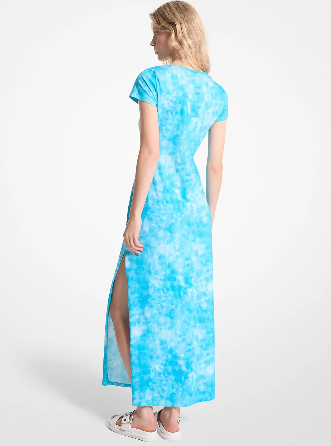 A unique sun-bleached pattern lends a bohemian-twist to this effortlessly cool maxi dress. It’s cut in a body-skimming fit with a high-leg slit for a hint of allure. Complement the vibrant blue hues with optic white sandals.