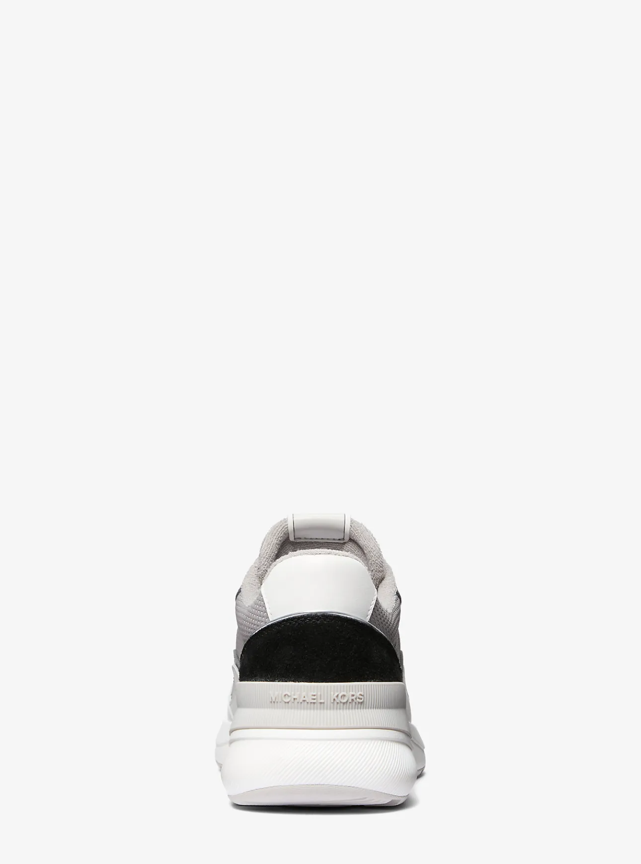 Effortless ease. The Trevor trainer is a sleek and sporty silhouette crafted from an interplay of stretch knit, smooth leather and rubber. The mixed-media upper is balanced with cushioned soles that are perfect for long days on your feet. Wear yours with tapered joggers.
