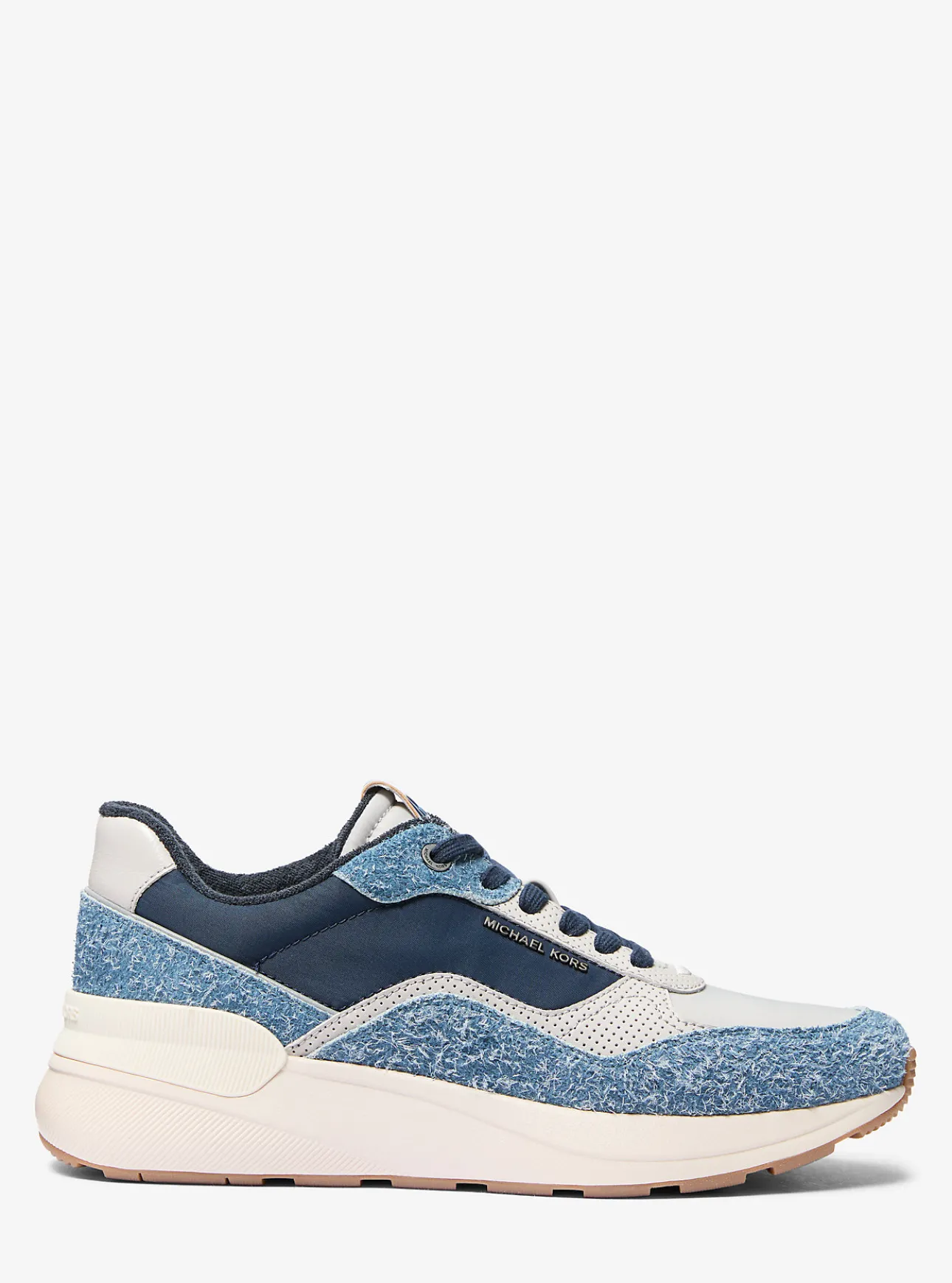 Effortless ease: the Trevor trainer is a sleek and sporty silhouette crafted from an interplay of stretch knit, perforated leather, suede and rubber. The mixed-media upper is balanced with cushioned soles that are perfect for long days on your feet. Wear yours with tapered joggers.