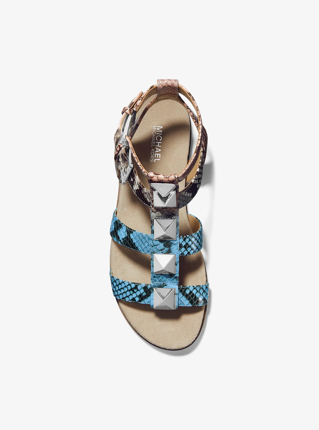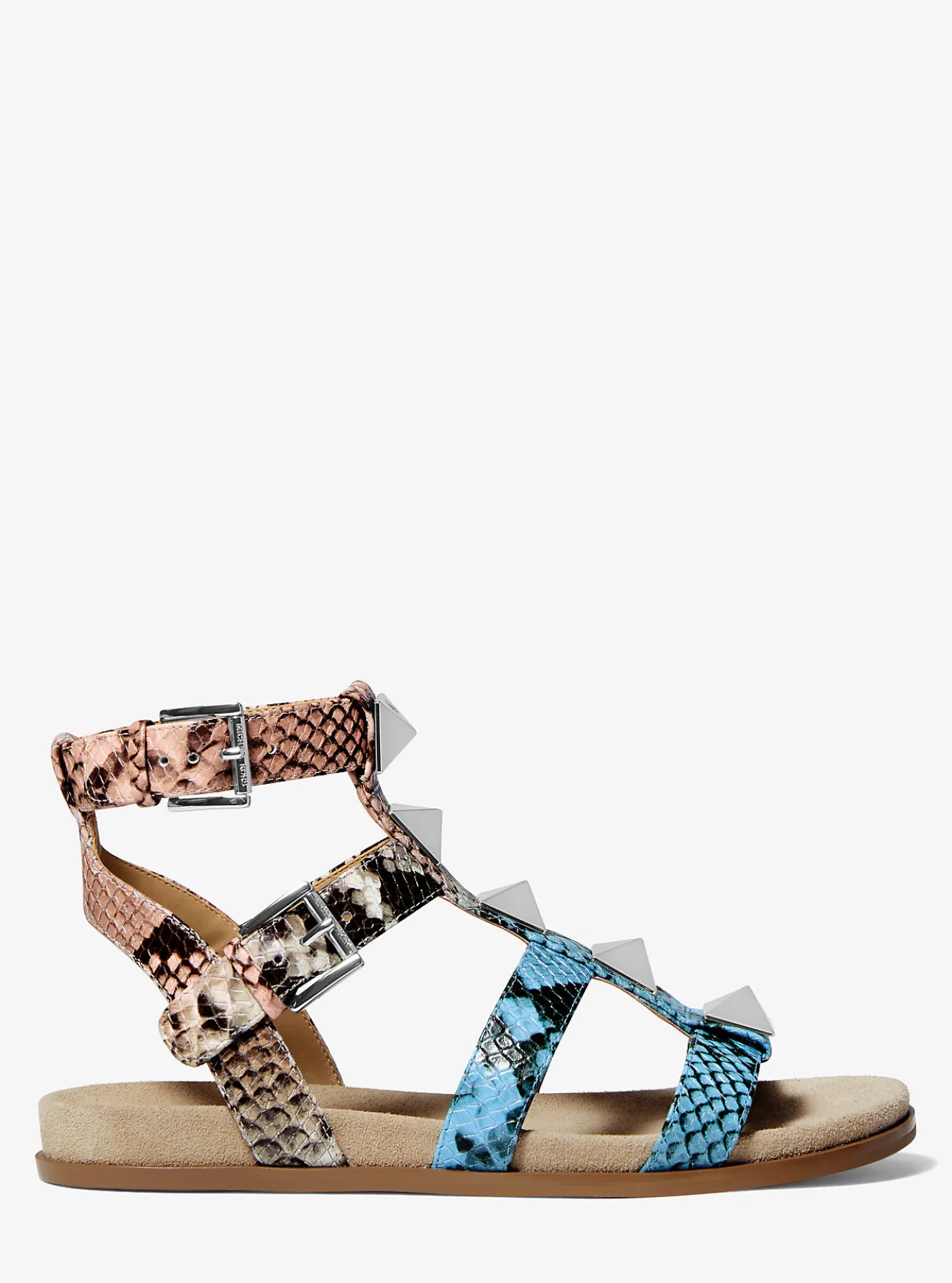 With its gladiator style and silver-tone studs, the Wren sandal makes casual looks edgy in an instant. This pair is made from ombré snake-embossed leather and rests on a cushioned rubber insole, making them perfect for day-to-night wear. Style them with dresses and separates alike.