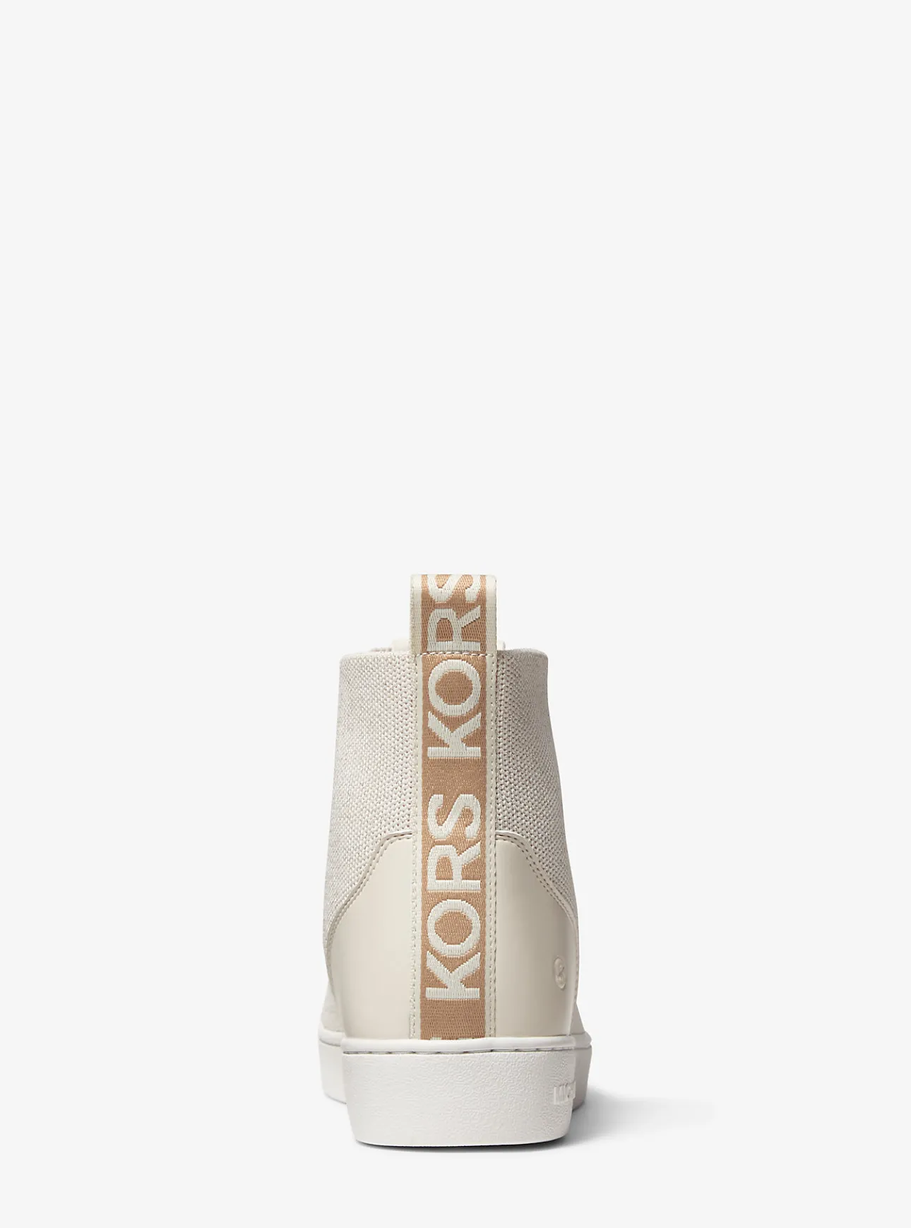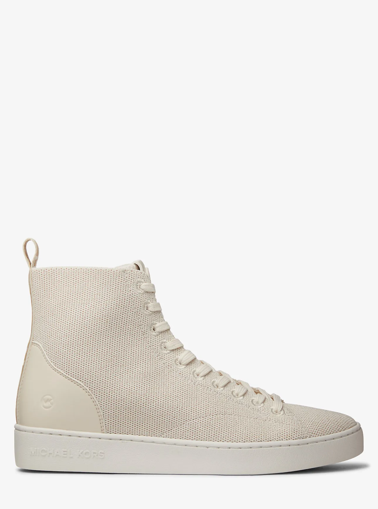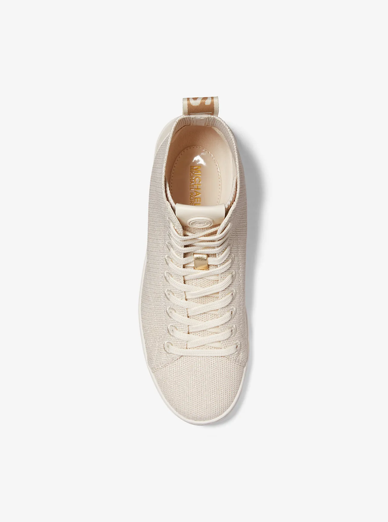 Our Edie high-top sneakers are a stylish staple for any wardrobe. Made from a stretch-knit fabric with subtle shimmer, they slip on and off easily thanks to a pull tab along the back. Showcase yours with jeans and dresses alike.