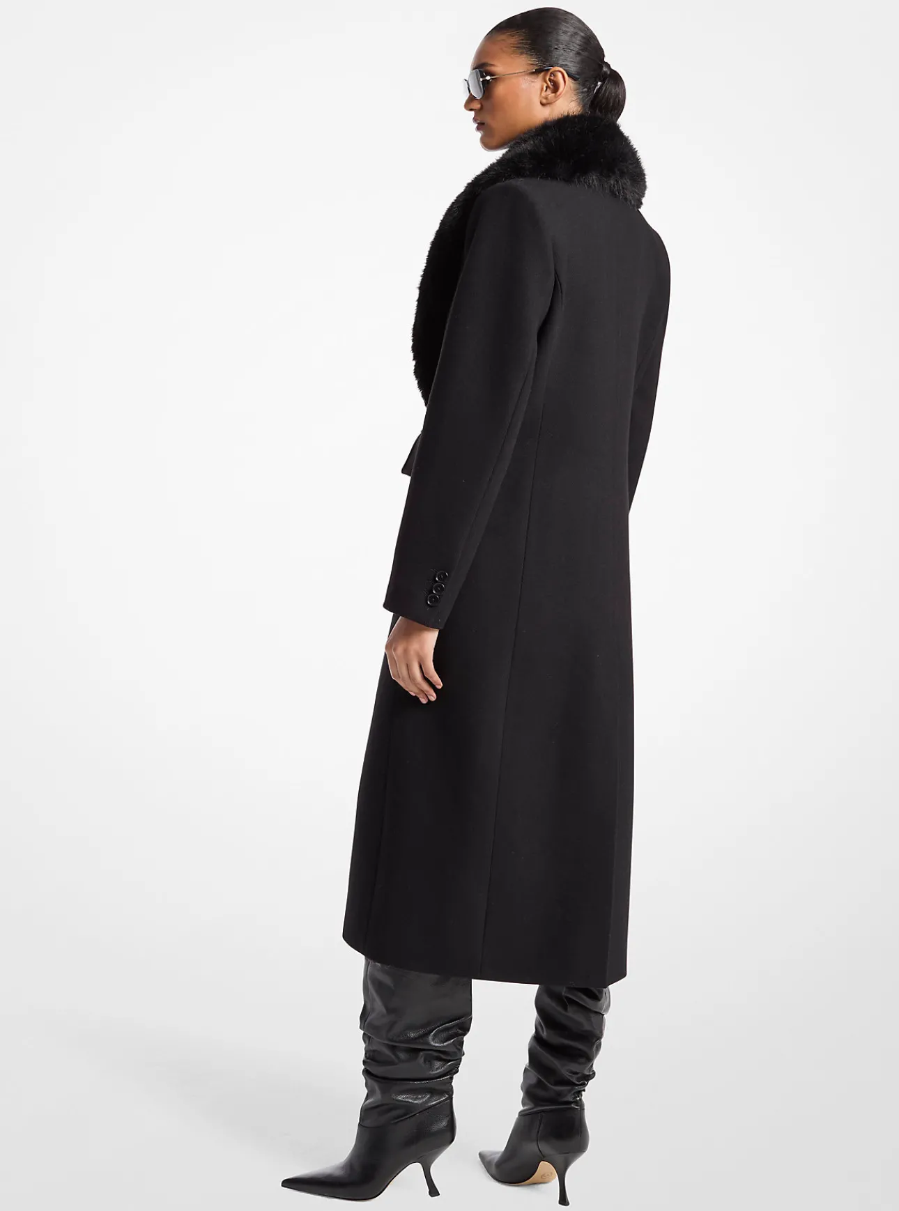 The classic wool coat is instantly updated with a removable faux fur collar for added warmth. It showcases a longline silhouette complete with a two-button fastening and pockets. Wear it over a short dress to keep it in focus.