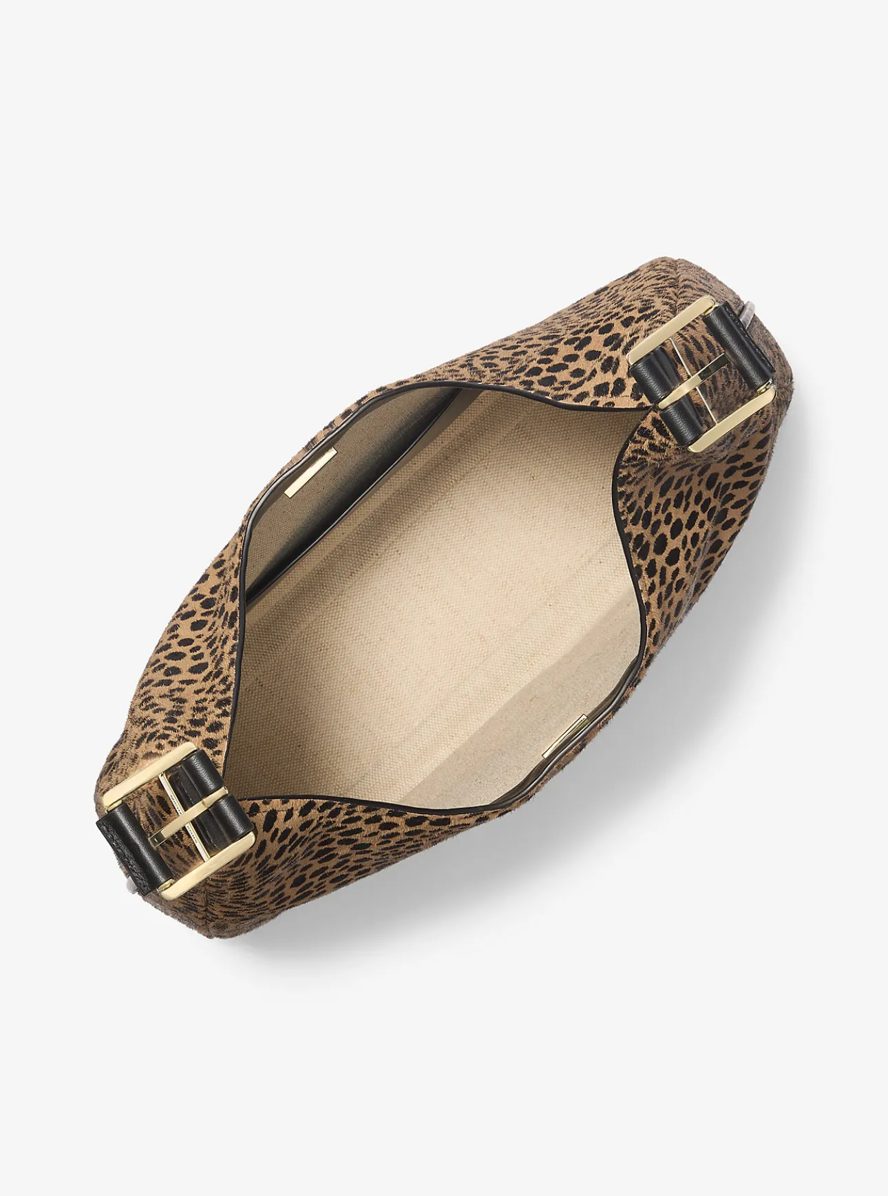 The cheetah-print Nolita hobo bag looks relaxed yet refined in calf hair with structured edges that define its shape. It features an adjustable leather shoulder strap with polished buckles and a large open interior for stashing everything you need.