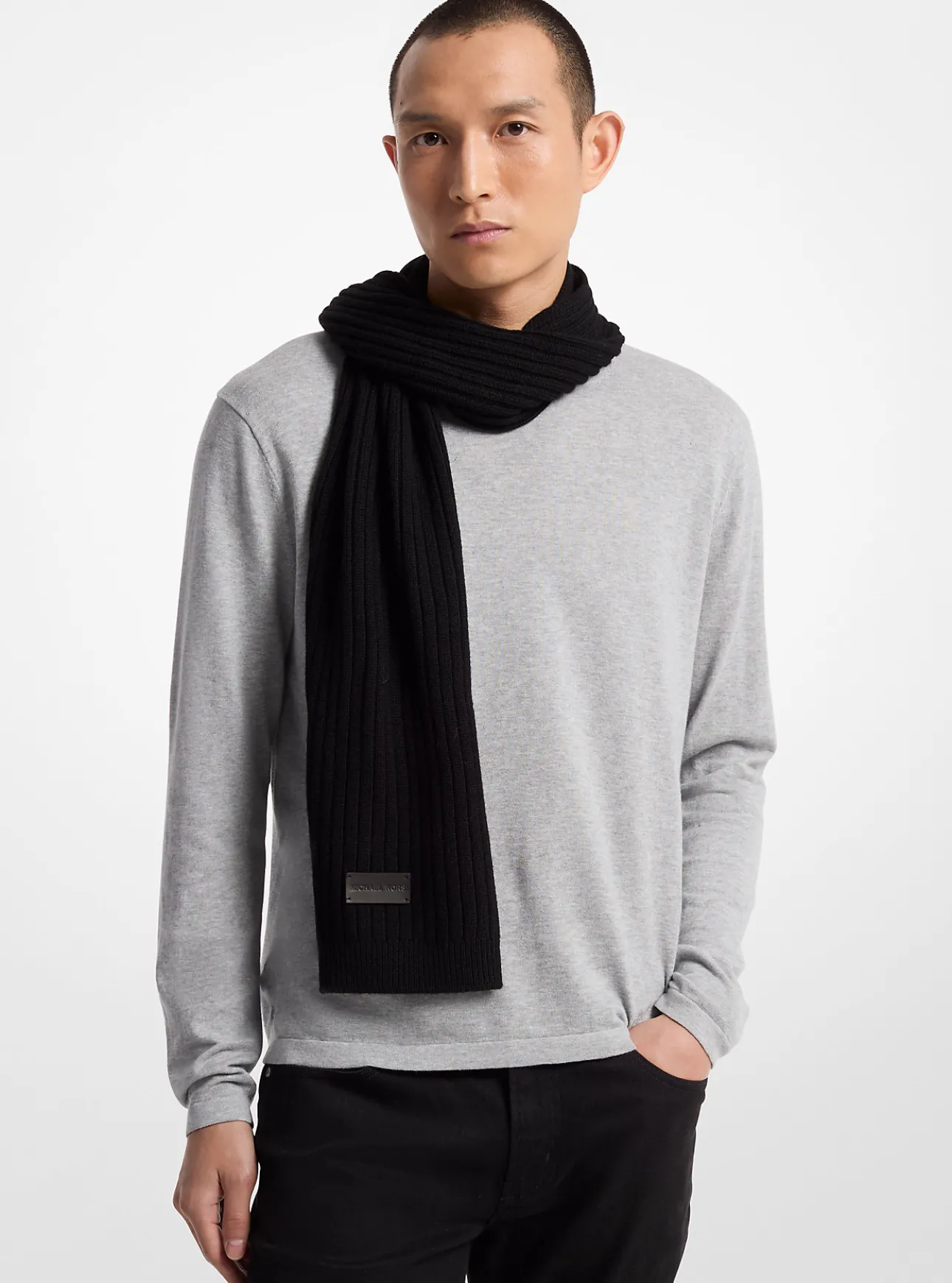 Complete cold-weather looks with this scarf. Crafted from mid-weight wool, it showcases a ribbed finish and leather patch etched with our brand lettering for a novelty, of-the-moment sensibility.